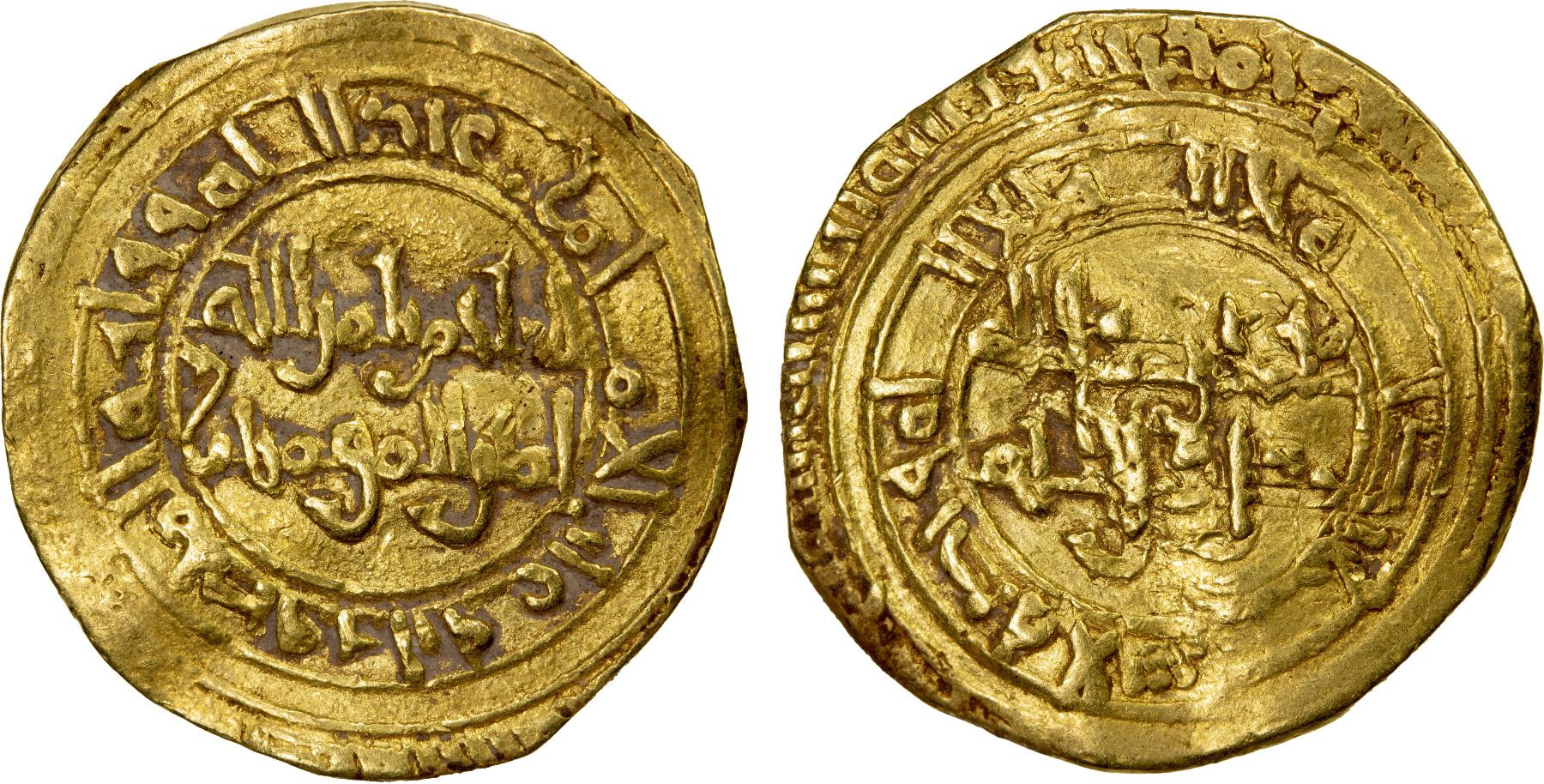 FATIMID: al-Hakim, 996-1021, AV dinar (4.02g), MM, DM, A-709.2, wavy surfaces, Fine.