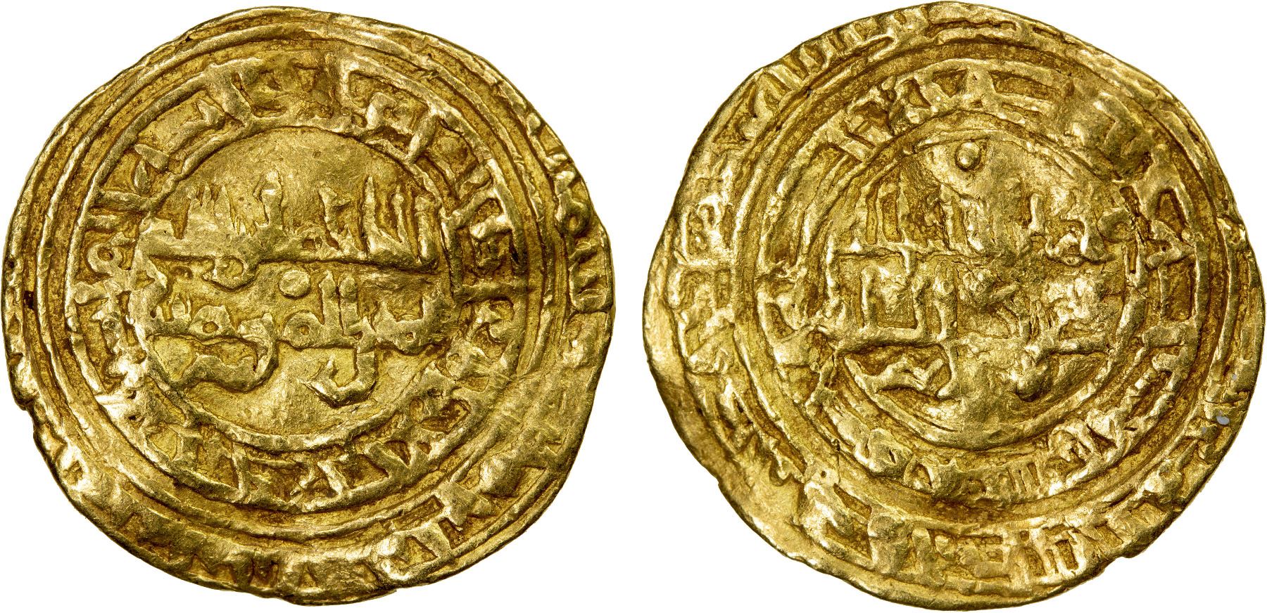 FATIMID: al-Hakim, 996-1021, AV dinar (4.21g), MM, DM, A-709.2, wavy surfaces, Fine.