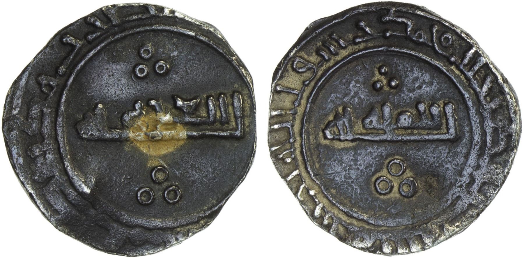 FATIMID: al-Mu'izz, 953-975, AR 1/2 dirham (1.29g), NM, ND, A-699-var, legend al-'izza / lillah, mint formula around, but mint name off flan and unknown // al-milla lillah, kalima around; attribution to al-Mu'izz is very tentative, but the style is somewhat similar to his early half dirhams of al-Mansuriya and Siqilliya dated AH342-343, strong VF, RRR.