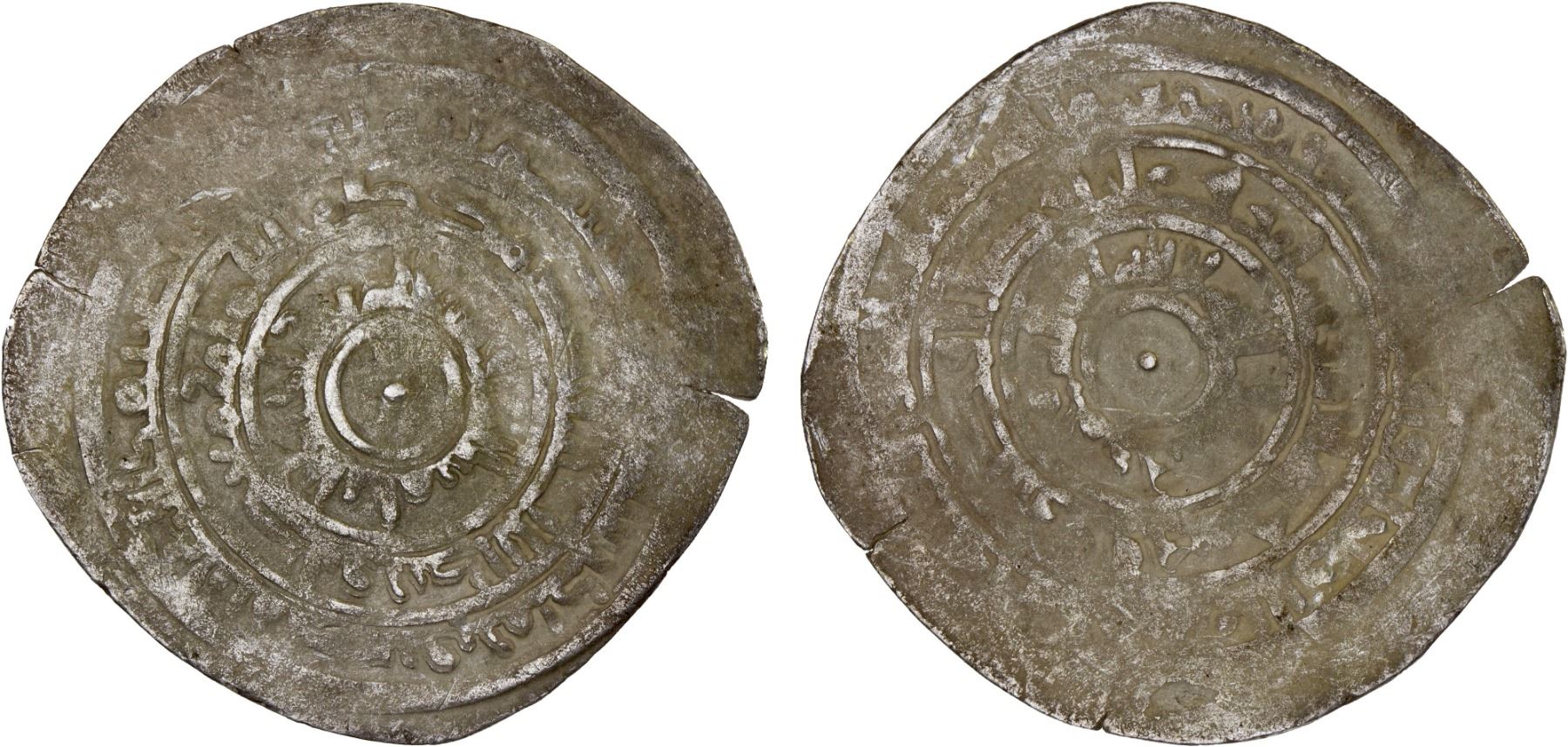 FATIMID: al-Mu'izz, 953-975, AR broad dirham (1.87g), Sur, DM, A-W699, the first known specimen of this type for the mint of Sur (Tyre), showing the month name Jumada after the mint name, but the date off flan; some very light porosity; unpublished and unique, F-VF, RRRR.