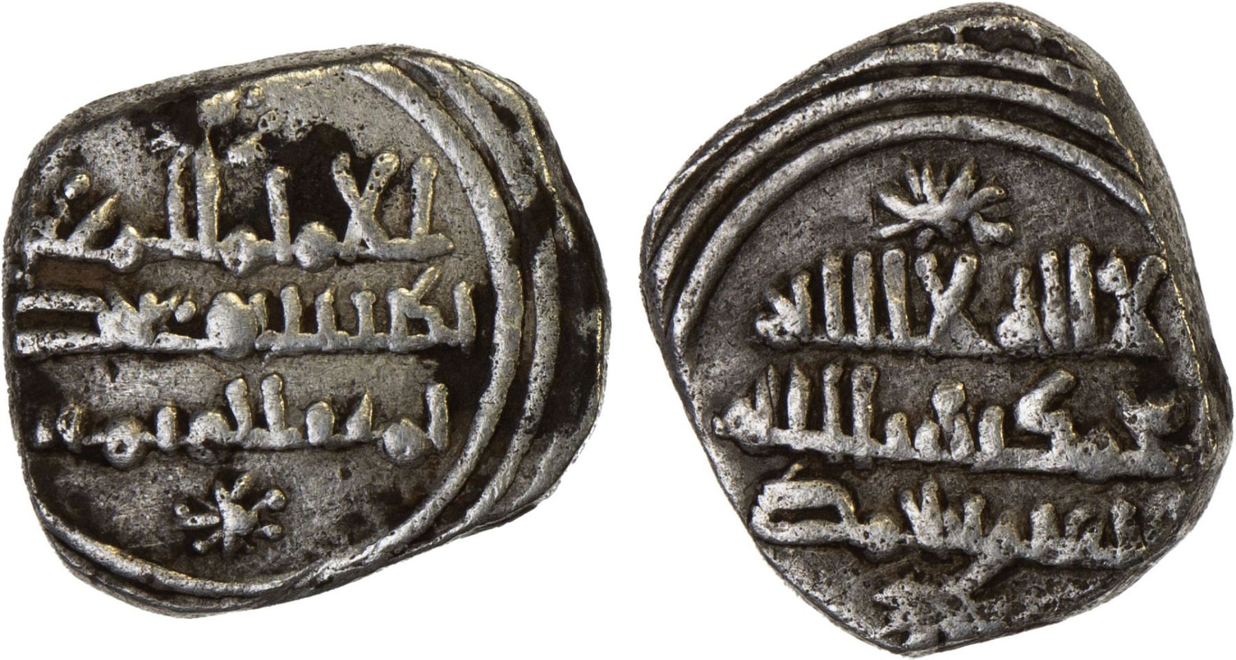 FATIMID: al-Mu'izz, 953-975, AR fractional dirham (1.18g), NM, ND, A-699-var, North African local tribal issue, citing al-Mu'izz and a local governor (read by the consignor as Khalaf b. Ahmad, but while the patronymic seems to be Ahmad, the son's name cannot to Khalaf, perhaps Qâsim but that also seems unlikely); star above & below both sides; finest quality; unpublished and unique, VF-XF, RRRR. Undoubtedly an issue of one of the numerous Berber tribes in North Africa, possibly part of the Maghrawid branch of the Zenata confederation.