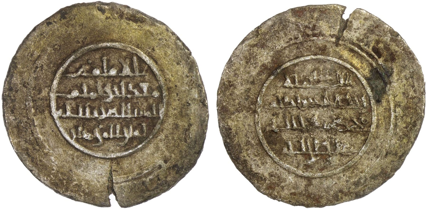 FATIMID: al-Mustansir, 1036-1094, BI dirham (3.34g), A-723, central legends exactly as type A-719.1, with outer blank border and traces of a second outer margin outside the border, which may contain a mint and date, VF, RRR. A similar example sold in our Auction 45, lot 573.