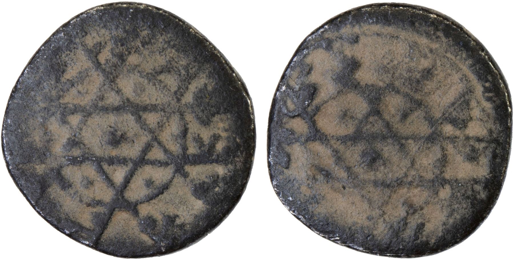 FATIMID: al-Mustansir, 1036-1094, BI dirham aswad (1.21g) (Halab), A-723H, stellate design as on the Sicilian stellate gold quarter dinar, but this billon version is known only for the mint of Halab (Aleppo in Syria), VF, RR.