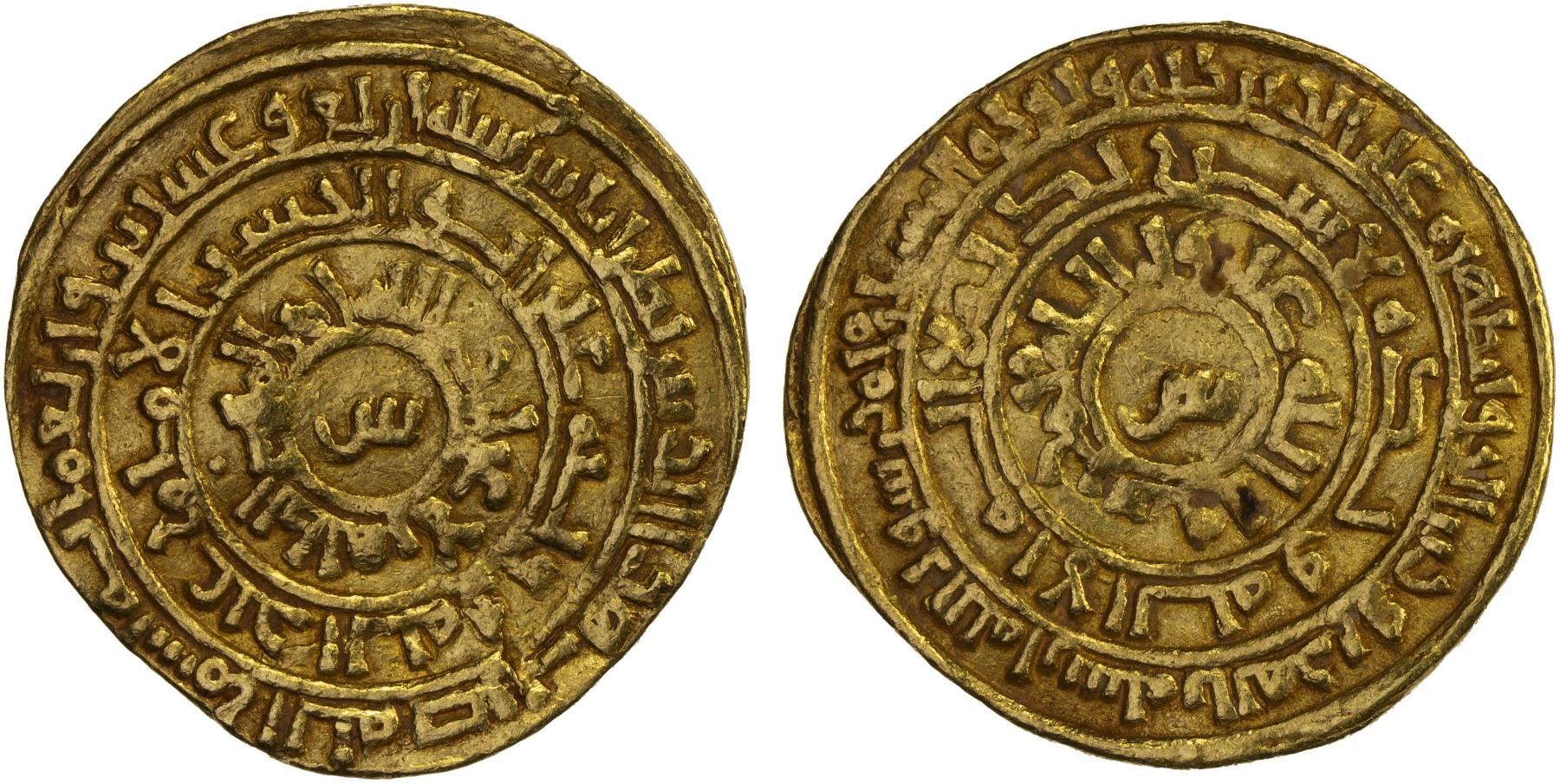 FATIMID: al-Zahir, 1021-1036, AV dinar (2.85g), Tarabulus (Tripoli), AH424, A-714.2, Nicol-1490 (only 2 examples cited), very rare mint for al-Zahir, with the Arabic letter "s" for this mint in both the obverse & reverse center; pleasing strike, VF, RR.