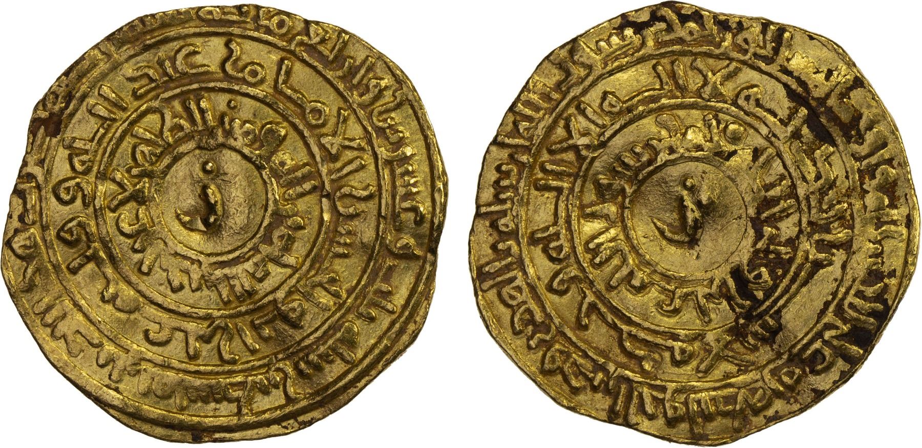 FATIMID: al-Zahir, 1021-1036, AV dinar (4.02g), Filastin, AH423, A-714.2, Nicol-1503 (type H1a), bold mint and date plus the Arabic letter "z" for this mint in both the obverse & reverse center, slightly uneven surfaces, VF-XF.