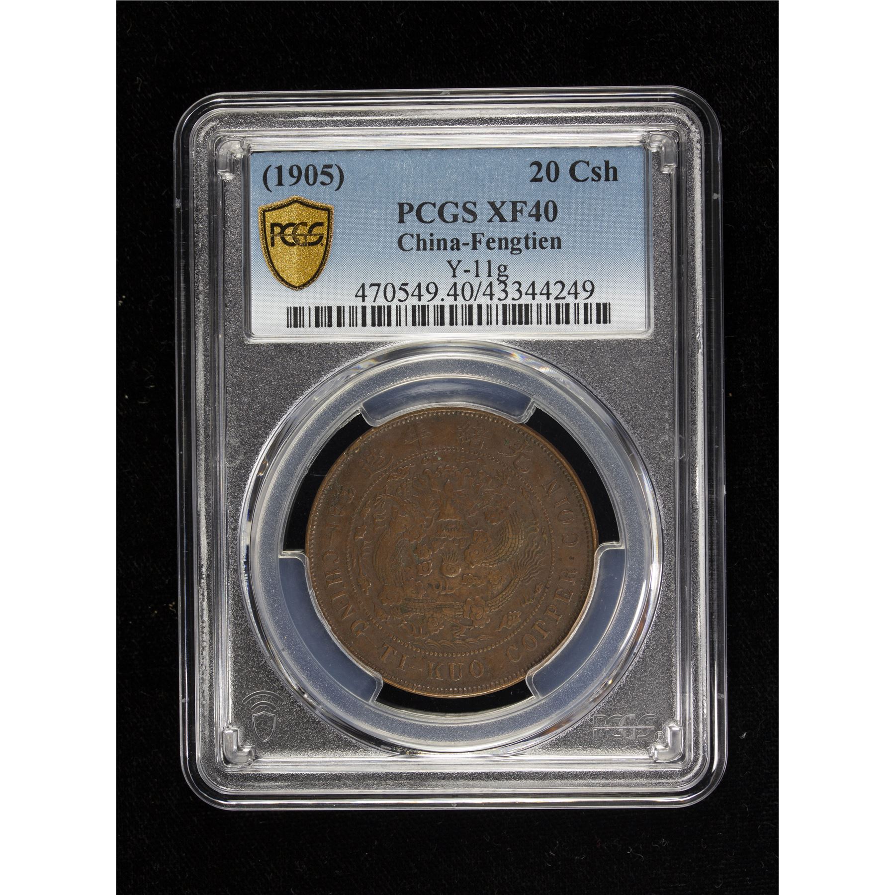 FENGTIEN: Kuang Hsu, 1875-1908, AE 20 cash, CD1905, Y-11g, PCGS graded EF40.