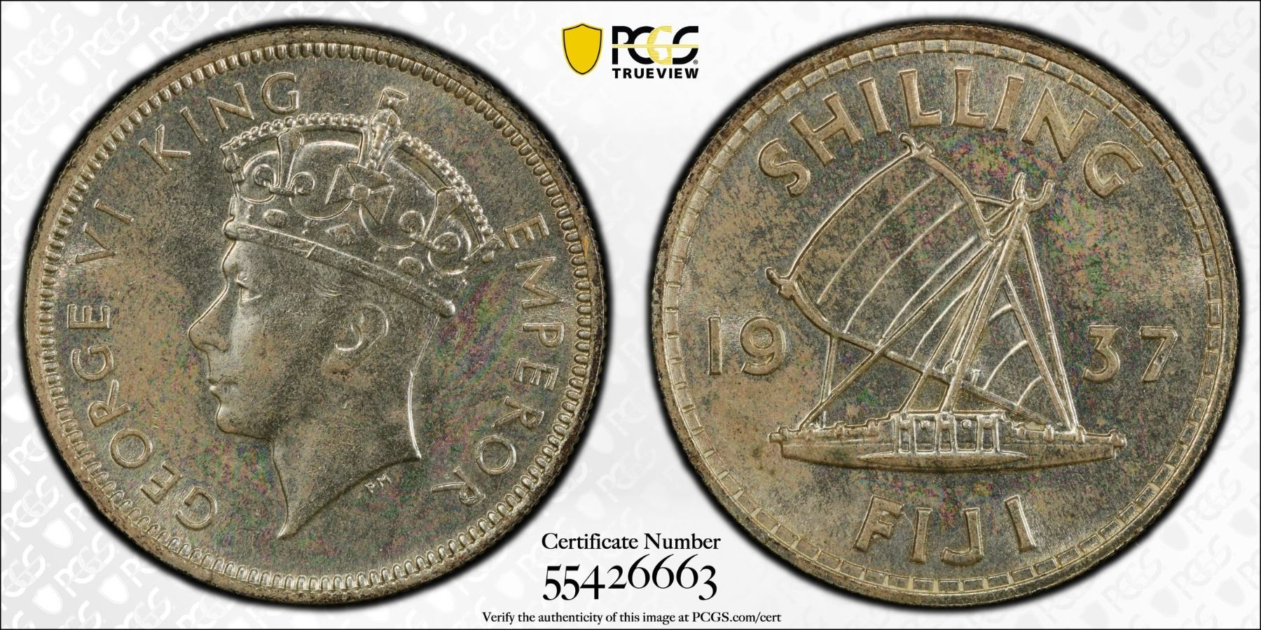 FIJI: George VI, 1936-1952, AR shilling, 1937, PCGS MS63