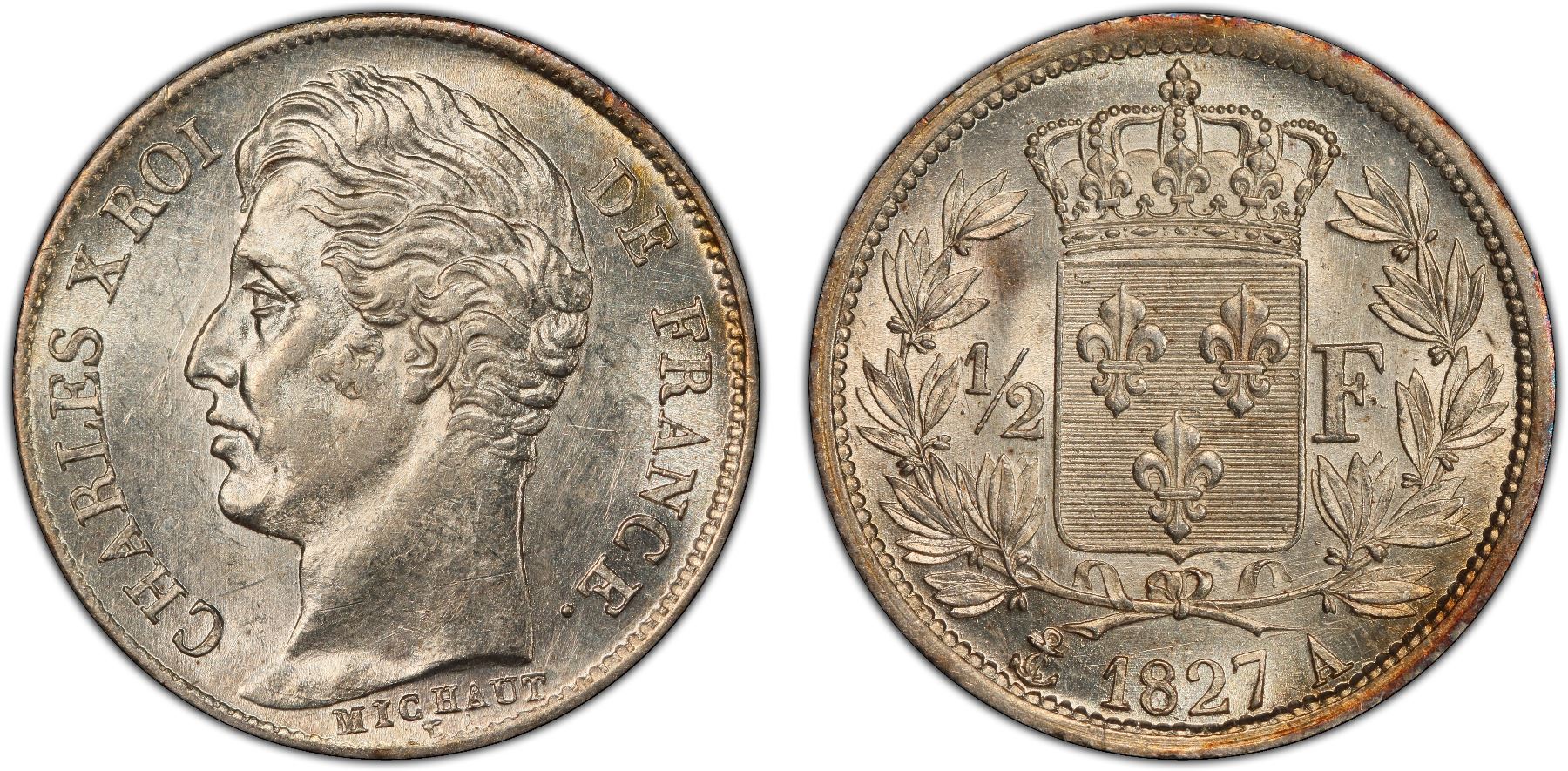 FRANCE: Charles X, 1824-1830, AR ¼ franc, 1827-A, PCGS MS62