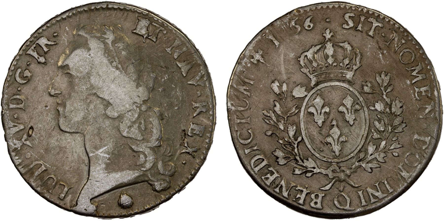FRANCE: Louis XV, 1715-1774, AR écu au bandeau, Perpignan, 1756-Q, KM-512.17, scratches, small obverse dig, Fine, ex Dr. Vincent John Adams Flynn Collection.