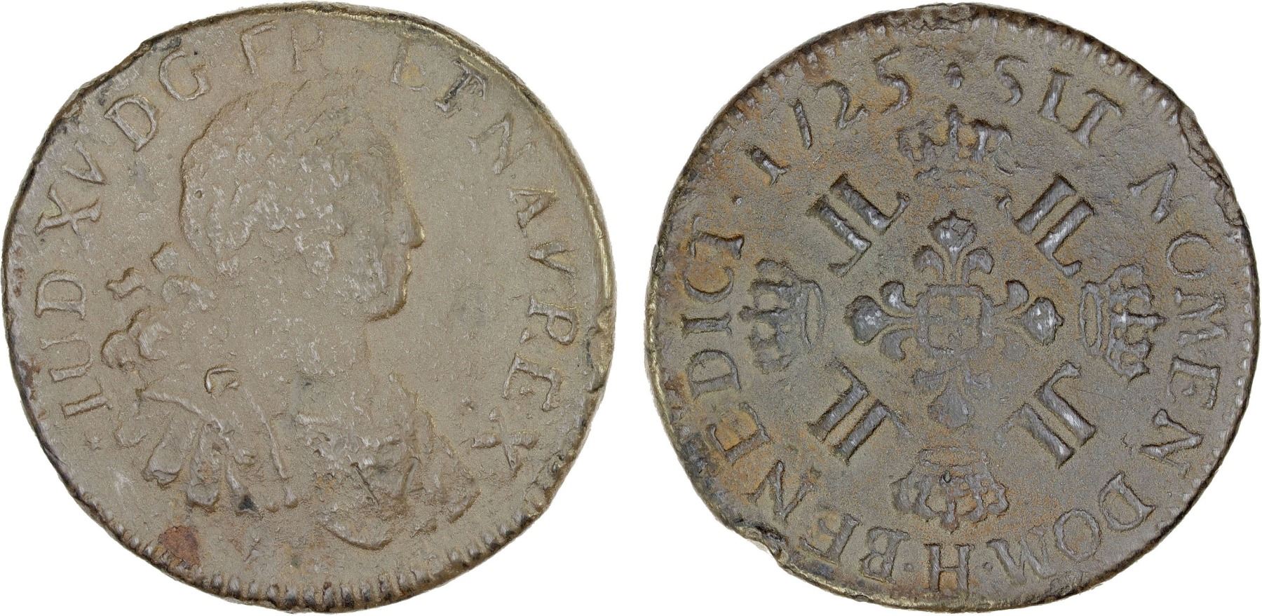 FRANCE: Louis XV, 1715-1774, AR ecu (22.13g), La Rochelle, 1725-H, KM-472.9, recovered from the Le Chameau shipwreck in Nova Scotia, surfaces are lightly corrroded but all details visible, toned, key date for the two-year type, VF-XF, ex Le Chameau shipwreck (certificate #144, not included). The French ship Chameau or Le Chameau (Camel) was a wooden sailing ship of the French Navy, built in 1717. She was used to transport passengers and supplies to New France (in present day Canada), making several trips. Nearing the end of her last voyage, a storm blew her onto some rocks on August 27, 1725 just miles short of her intended destination of Louisbourg. She sank, with the loss of all aboard; estimates range as high as 316 dead. In 1965, Alex Storm and his associates located the wreckage near Chameau Rock, and recovered a treasure of gold and silver coins.