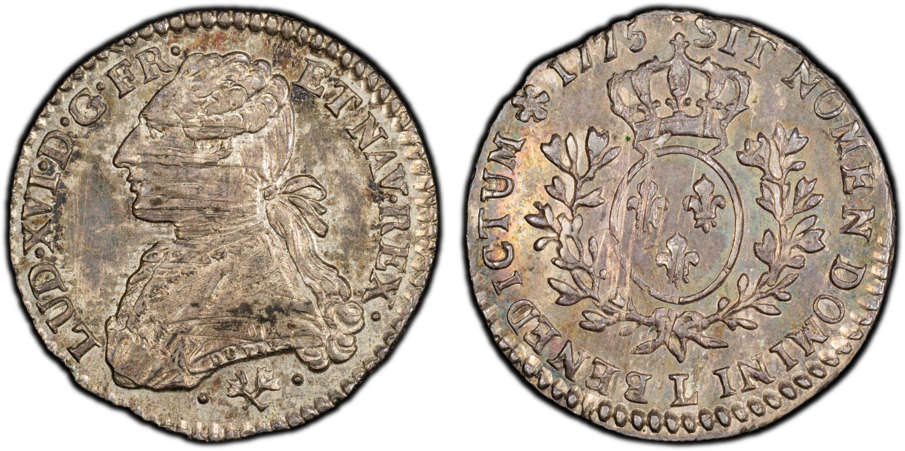 FRANCE: Louis XVI, 1774-1790, AR 1/10 écu (12 sols), Bayonne, 1775-L, KM-568.6, Gadoury-353, toned, obverse adjustmant marks, very rare date/mintmark, PCGS graded MS62.