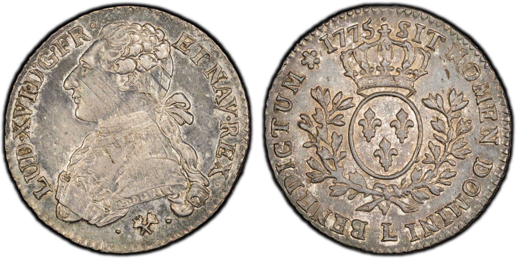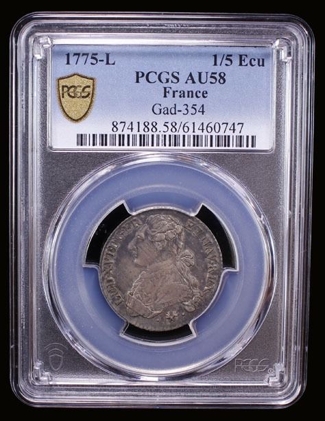 FRANCE: Louis XVI, 1774-1790, AR 1/5 écu (24 sols), Bayonne, 1775-L, KM-569.7, Gadoury-354, toned, rare date/mintmark, PCGS graded AU58.