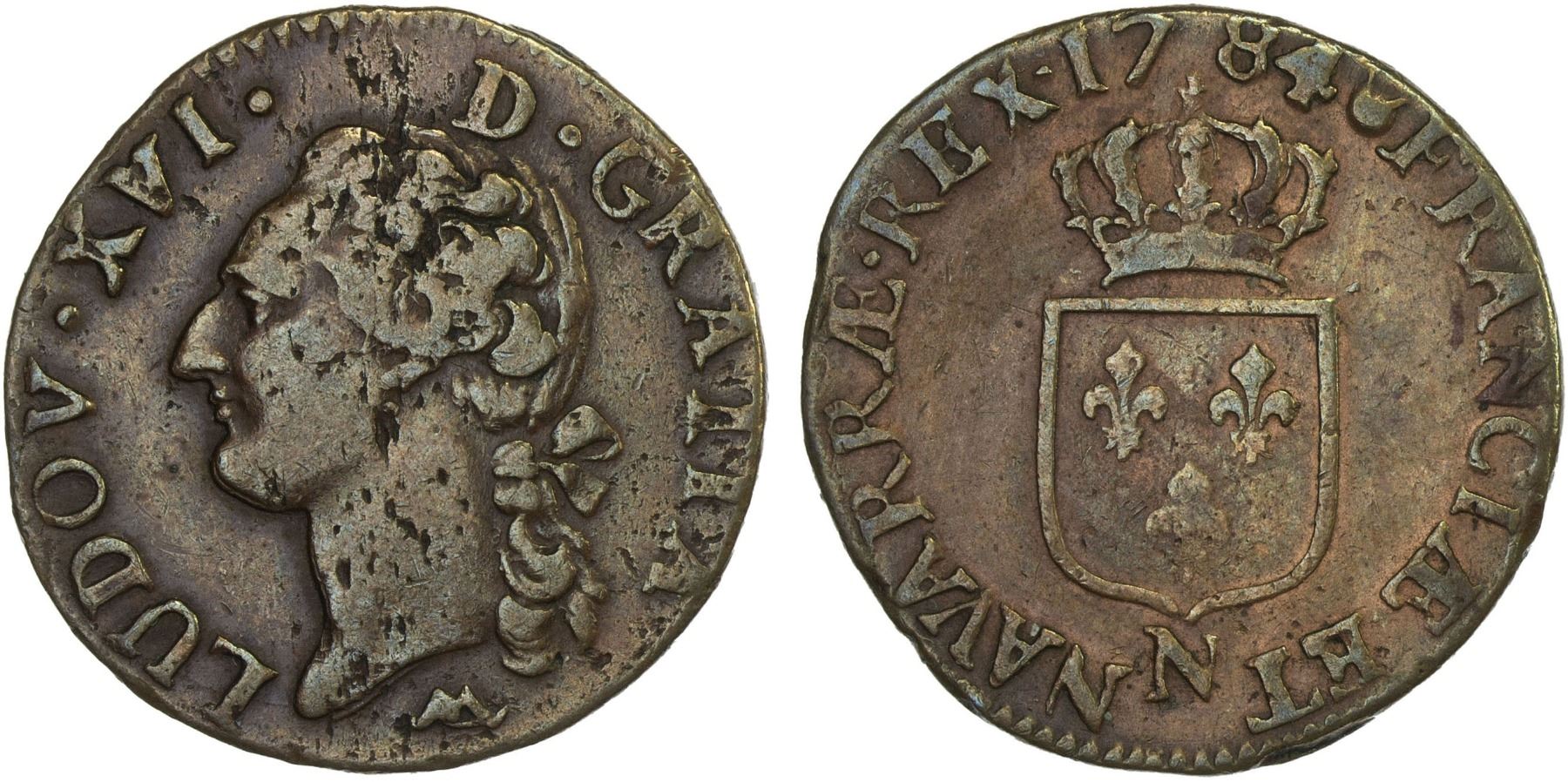 FRANCE: Louis XVI, 1774-1793, AE 1/2 sol, Montpellier, 1784-N, KM-578.12, Cr-73.2, Gadoury-349, date/mintmark unlisted in Krause, extremely rare (per Gadoury), some obverse haymarking, F-VF.