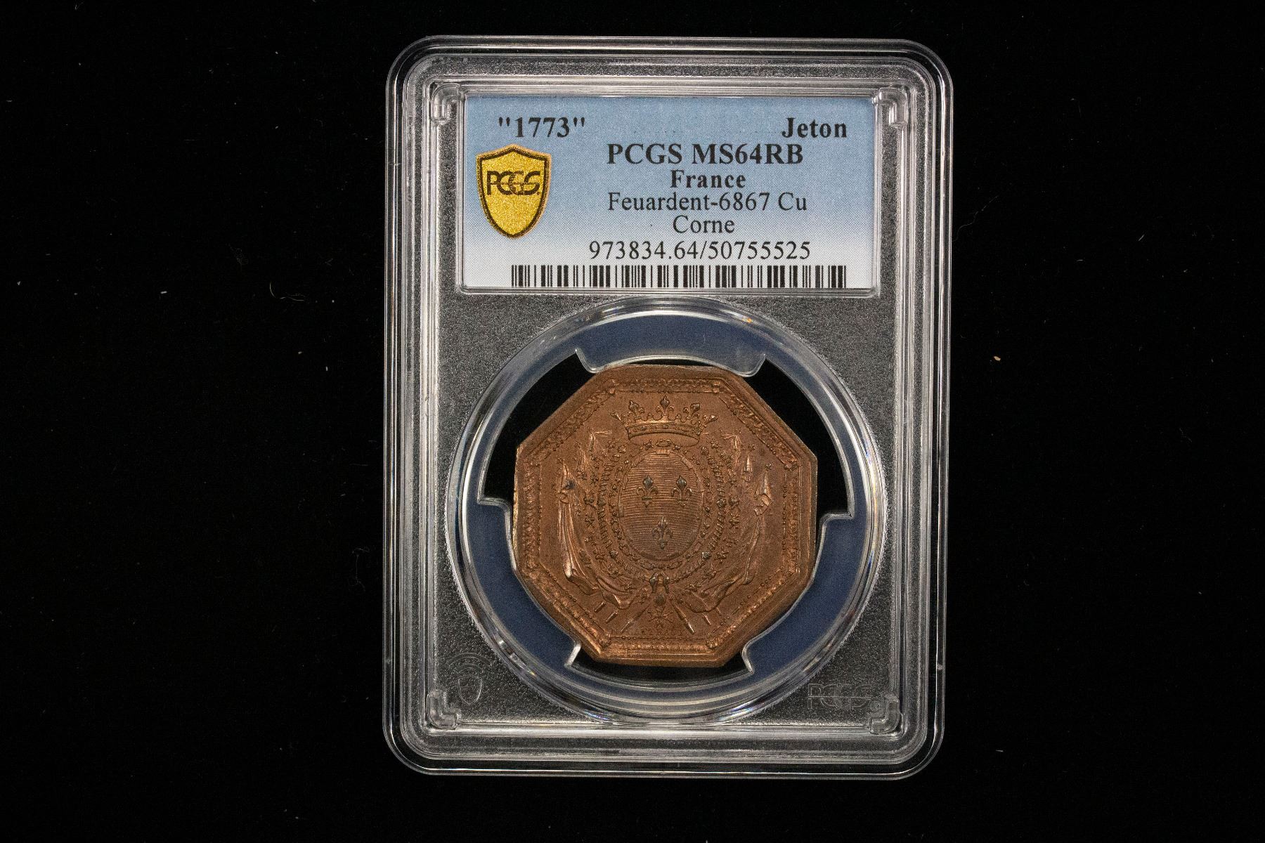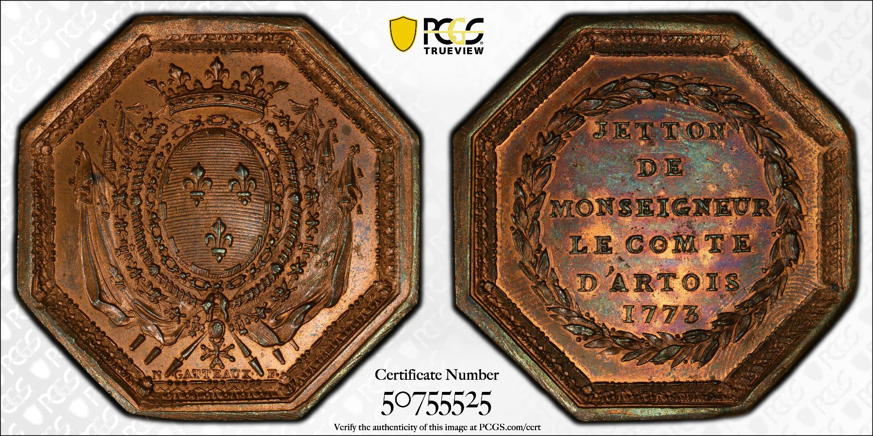FRANCE: Ludwig XVI, 1774-1793, AE bronze jeton, 1773, PCGS MS64 RB