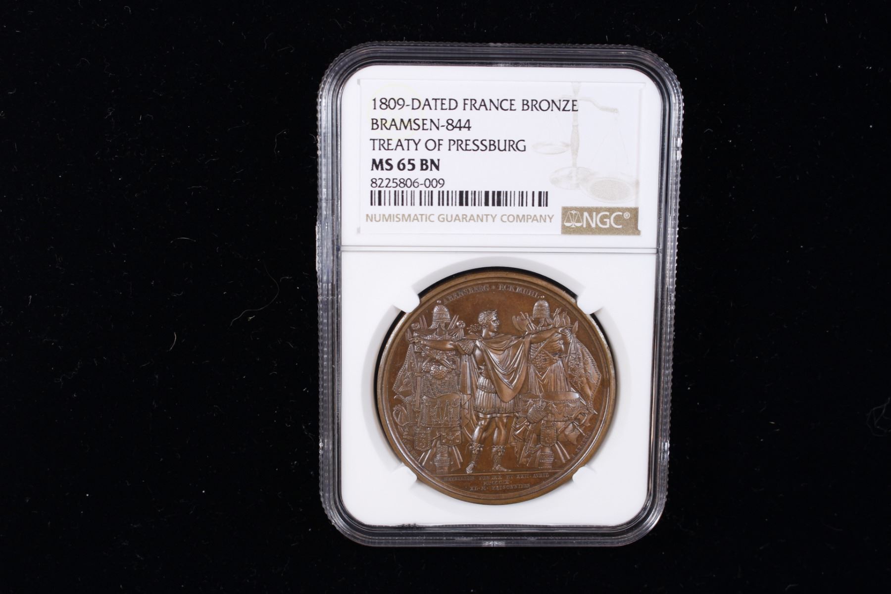 FRANCE: Napoleon I, Emperor, 1804-1814, AE medal, 1809, NGC MS65 BN