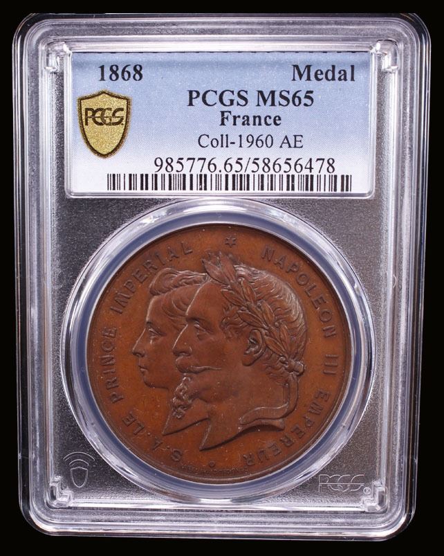 FRANCE: Napoleon III, 1852-1870, AE medal, 1868, PCGS MS65