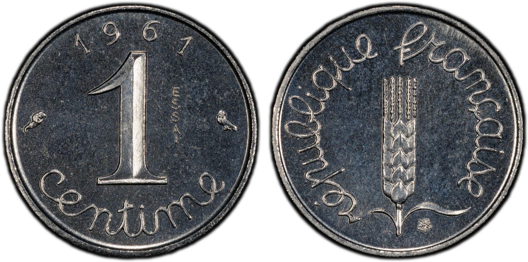 FRANCE: Republic, 1 centime, 1961, KM-PE933, ESSAI piedfort (piéfort) strike, very lustrous, mintage of only 104 pieces, rare, PCGS graded Specimen 67.
