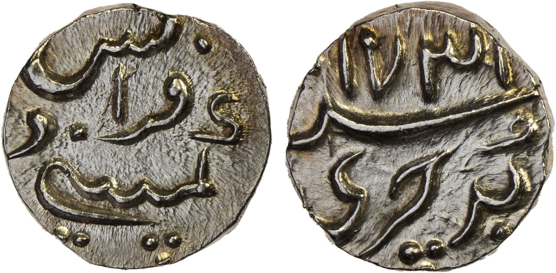 FRENCH INDIA: AR fanon (2.29g), Pondichéry, 1731, KM-66, Lec-64, issue of the French East India Company for the city of Mahé, struck during the reign of Louis XV (1715-1774), Unc.