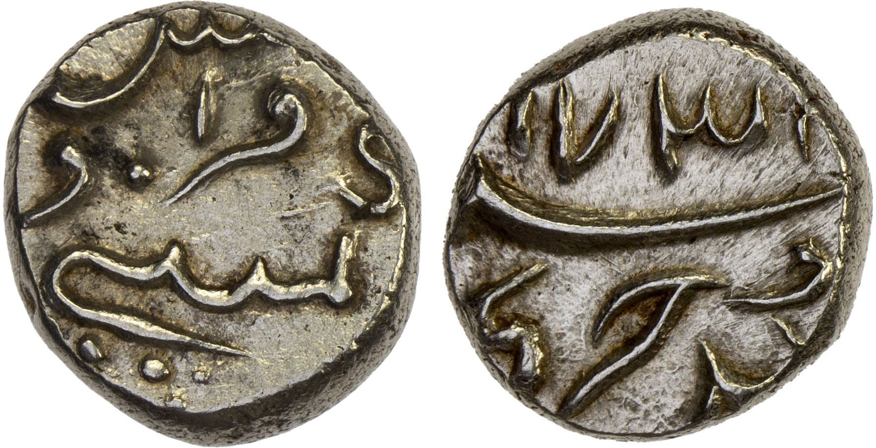 FRENCH INDIA: AR fanon (2.29g), Pondichéry, 1731, KM-66, Lec-64, issue of the French East India Company for the city of Mahé, struck during the reign of Louis XV (1715-1774), Unc.