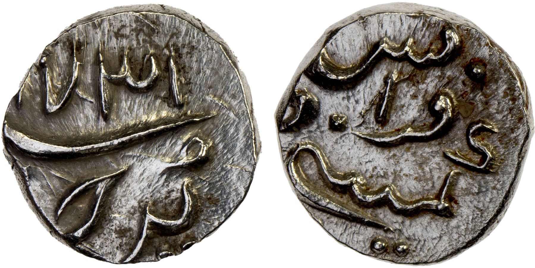 FRENCH INDIA: AR fanon (2.32g), Pondichéry, 1731, KM-66, Lec-64, issue of the French East India Company for the city of Mahé, struck during the reign of Louis XV (1715-1774), Unc.