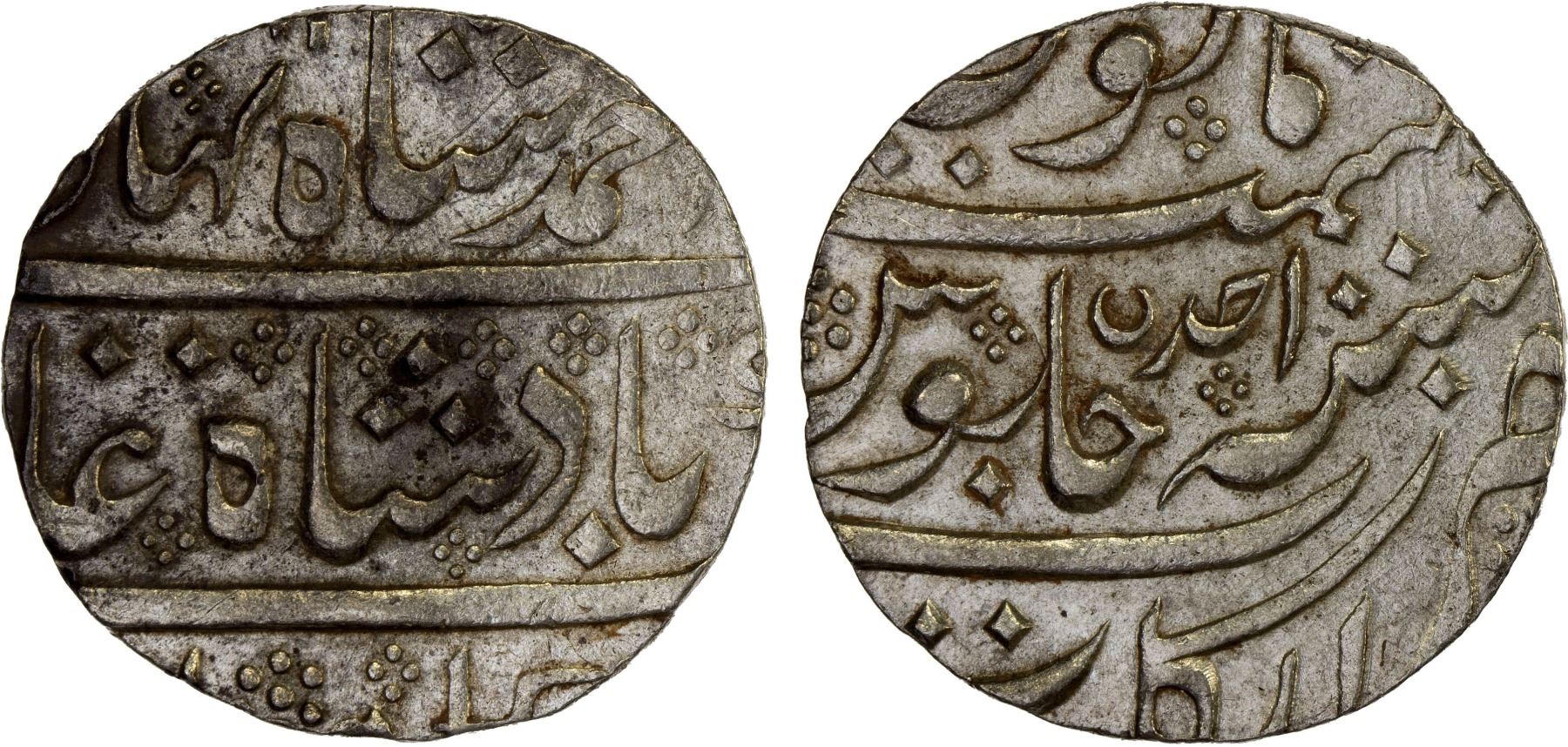 FRENCH INDIA: AR rupee (11.25g), Arkat, year 1, KM-8, in the name of Ahmad Shah Bahadur, with crescent privy mark, lustrous, AU.