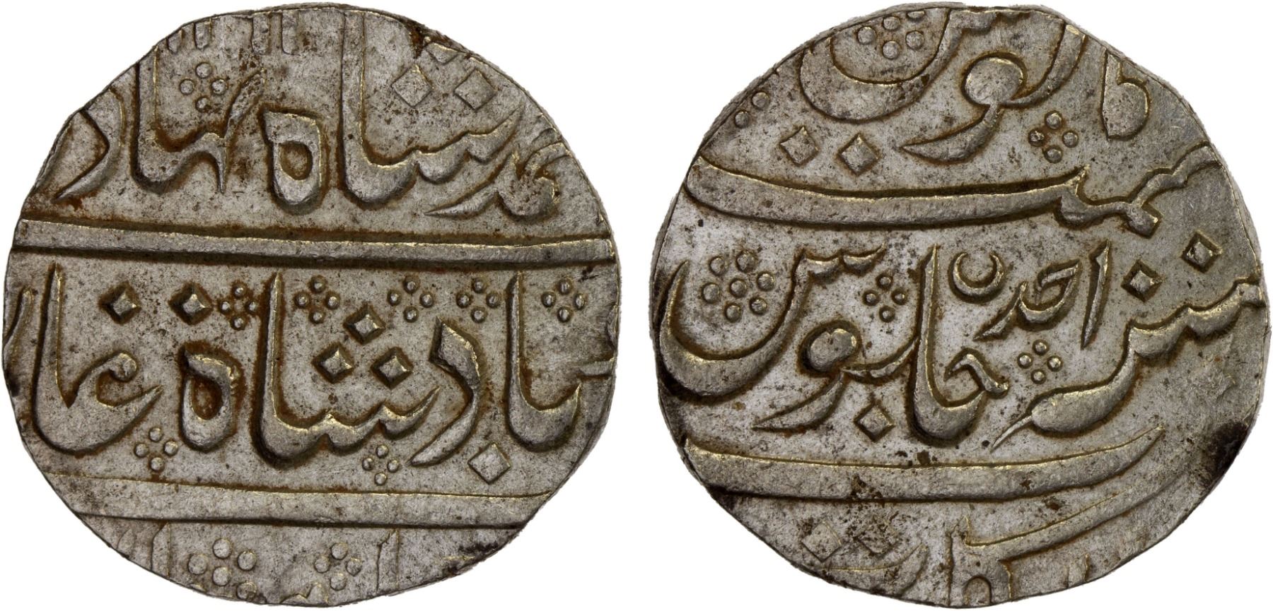 FRENCH INDIA: AR rupee (11.37g), Arkat, year 1, KM-8, in the name of Ahmad Shah Bahadur, with crescent privy mark, lustrous, AU.