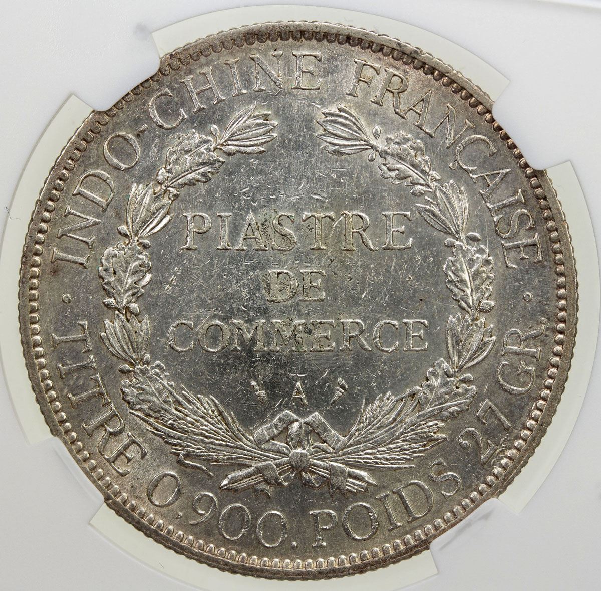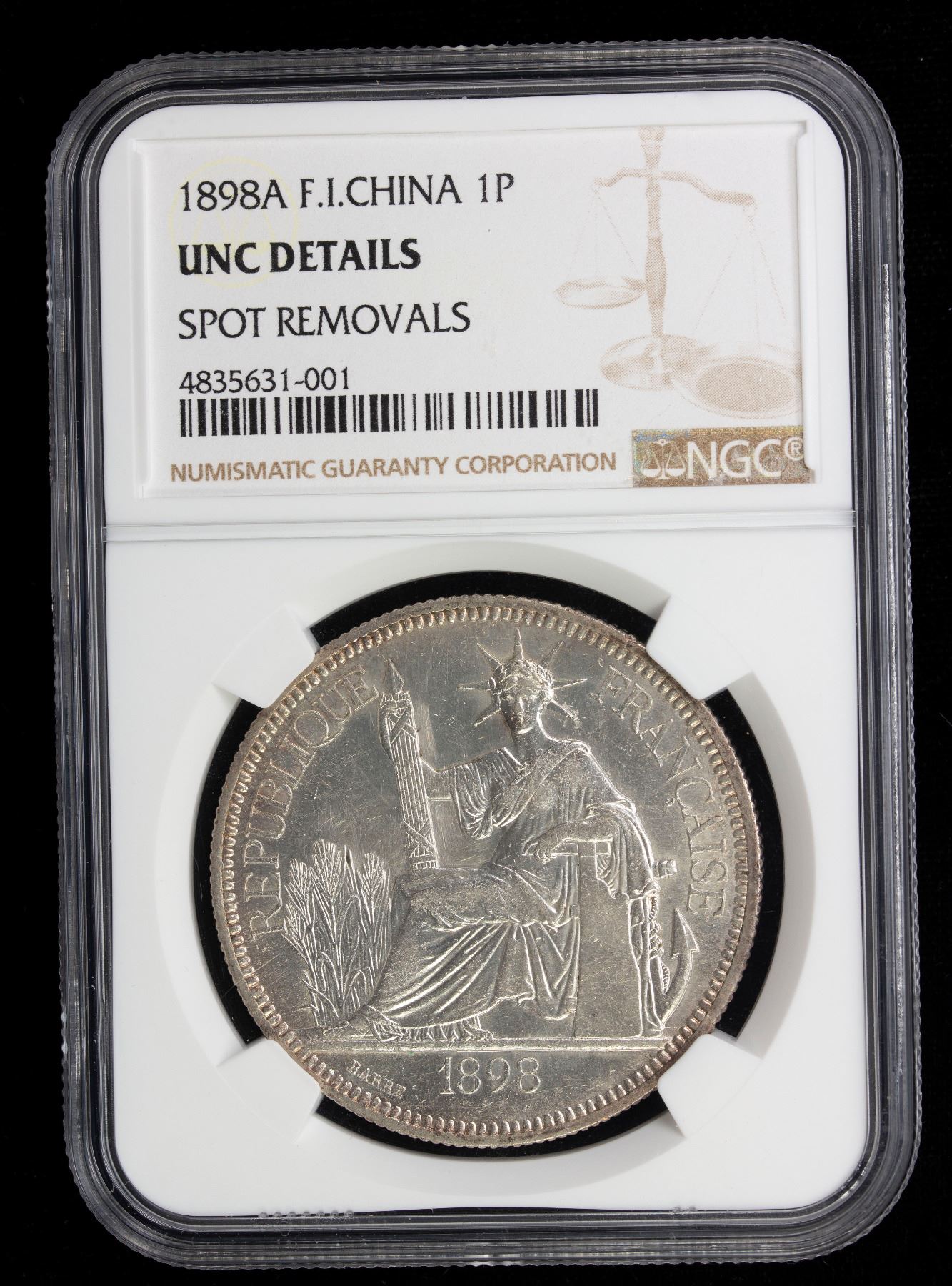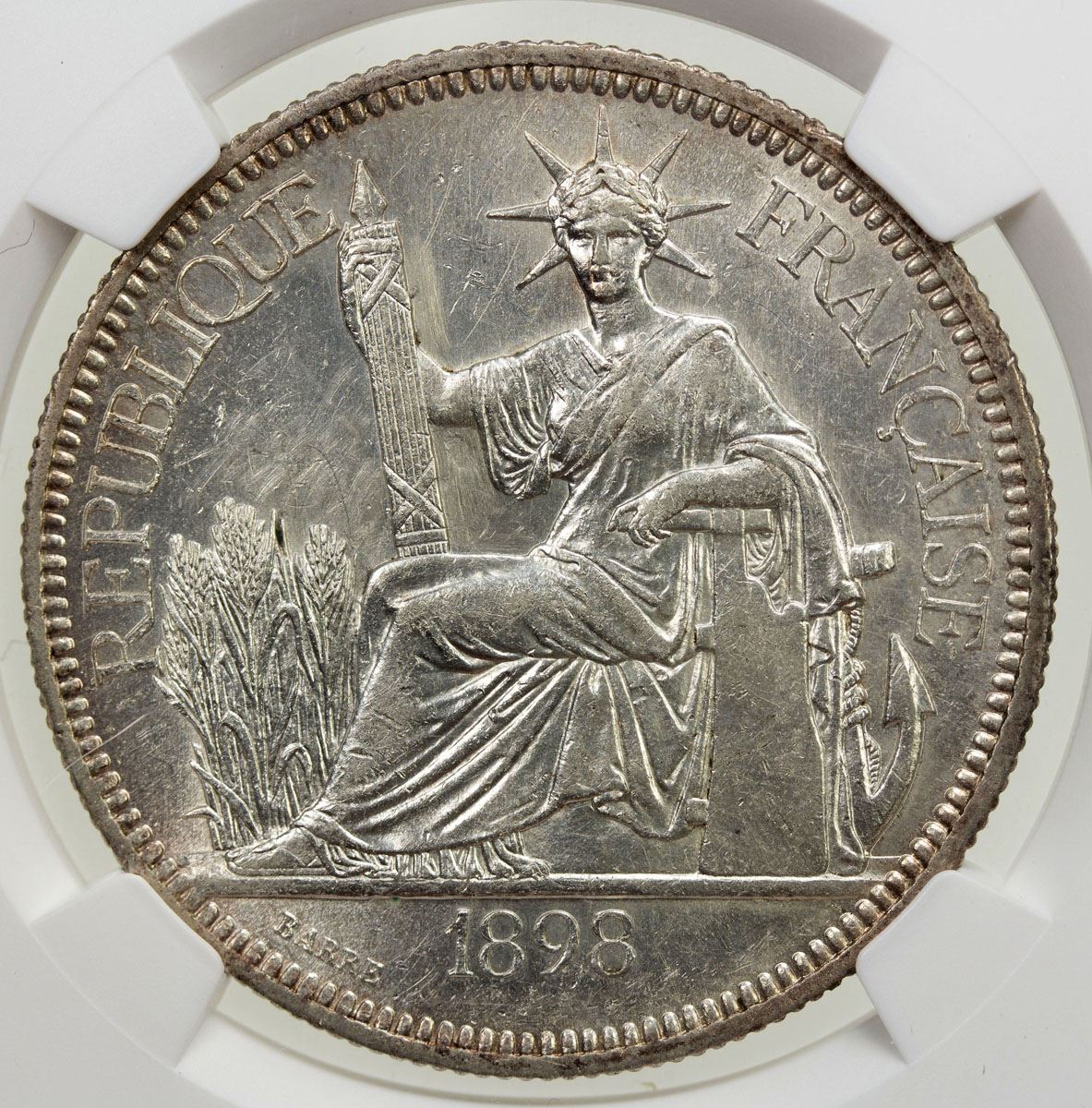 FRENCH INDOCHINA: AR piastre, 1898A, KM-5a.1, spot removed (barely noticeable, very minor adjustment left of Liberty's head), Unc.