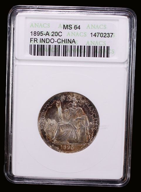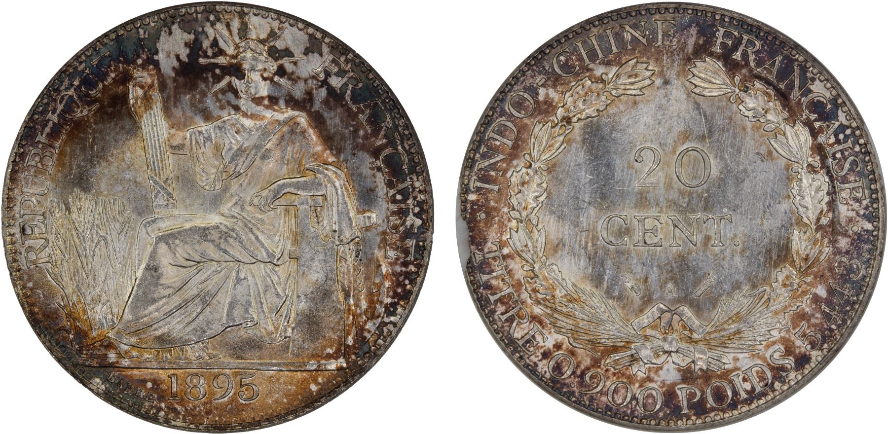 FRENCH INDOCHINA: French Colony, AR 20 cents, 1895-A, ANACS MS64