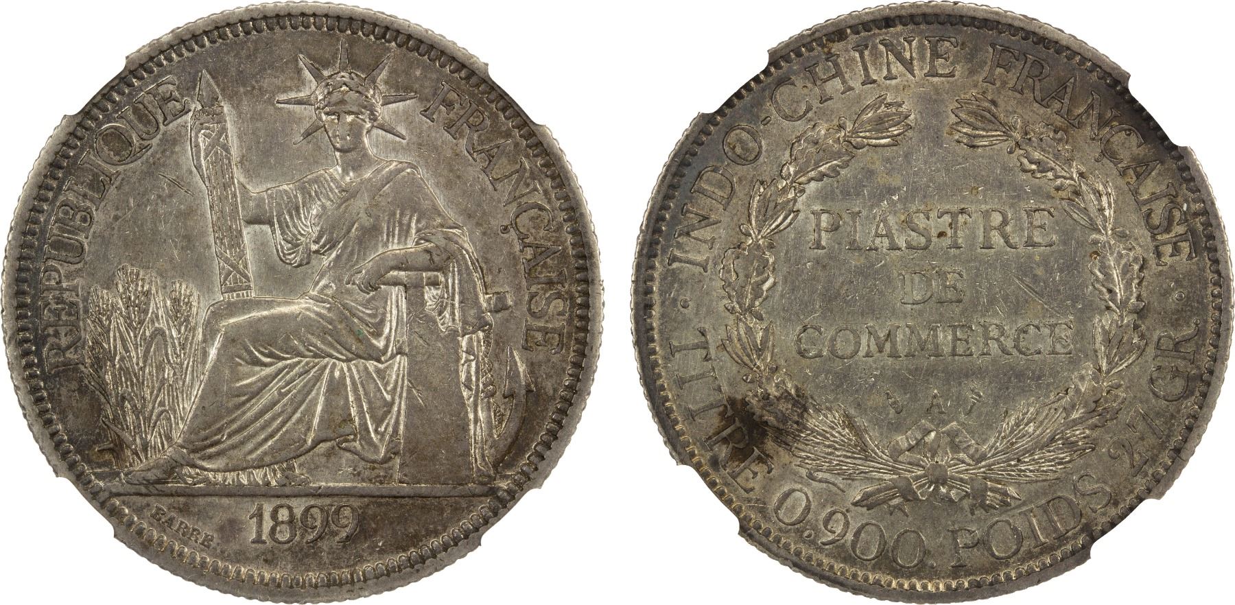 FRENCH INDOCHINA: French Colony, AR piastre, Paris, 1899-A, NGC AU58