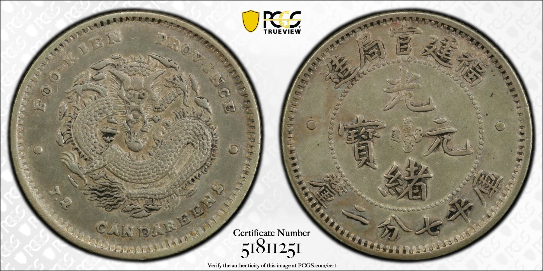 FUKIEN: Kuang Hsu, 1875-1908, AR 10 cents, ND (1903-08), PCGS VF35
