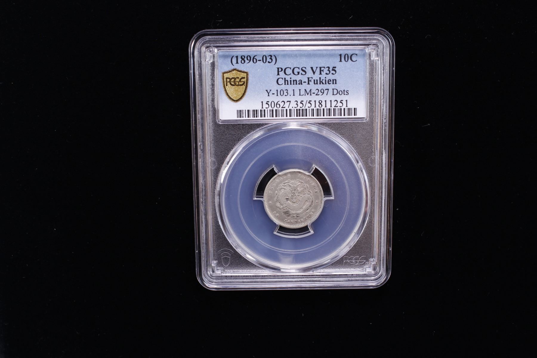 FUKIEN: Kuang Hsu, 1875-1908, AR 10 cents, ND (1903-08), Y-103.1, L&M-297, dots at either side of dragon variety, PCGS graded VF35.