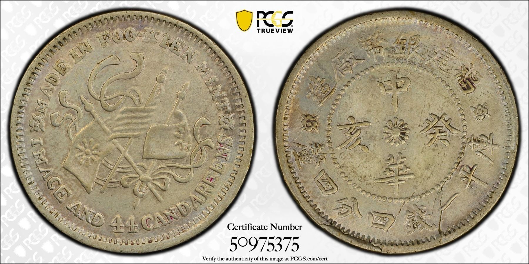 FUKIEN: Republic, AR 20 cents, CD1923, Y-381, L&M-304, type 2, flags of the Xinhai Revolution; Wuchang Uprising, Five-colored and Tongmenghui flags, cleaned, PCGS graded AU details.