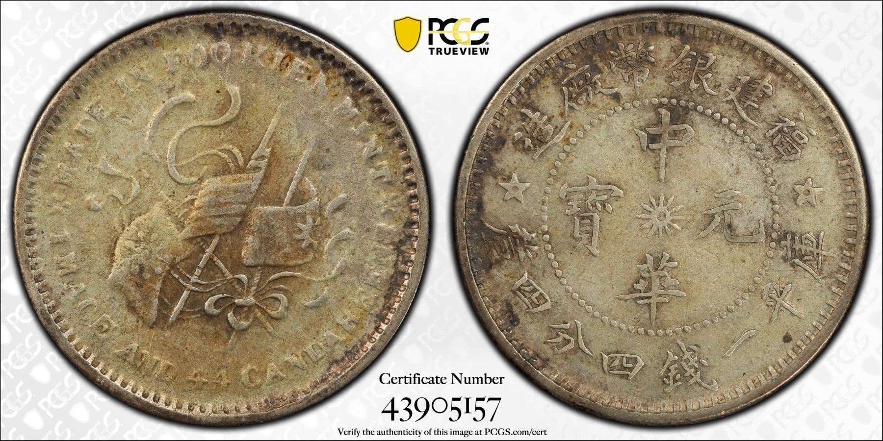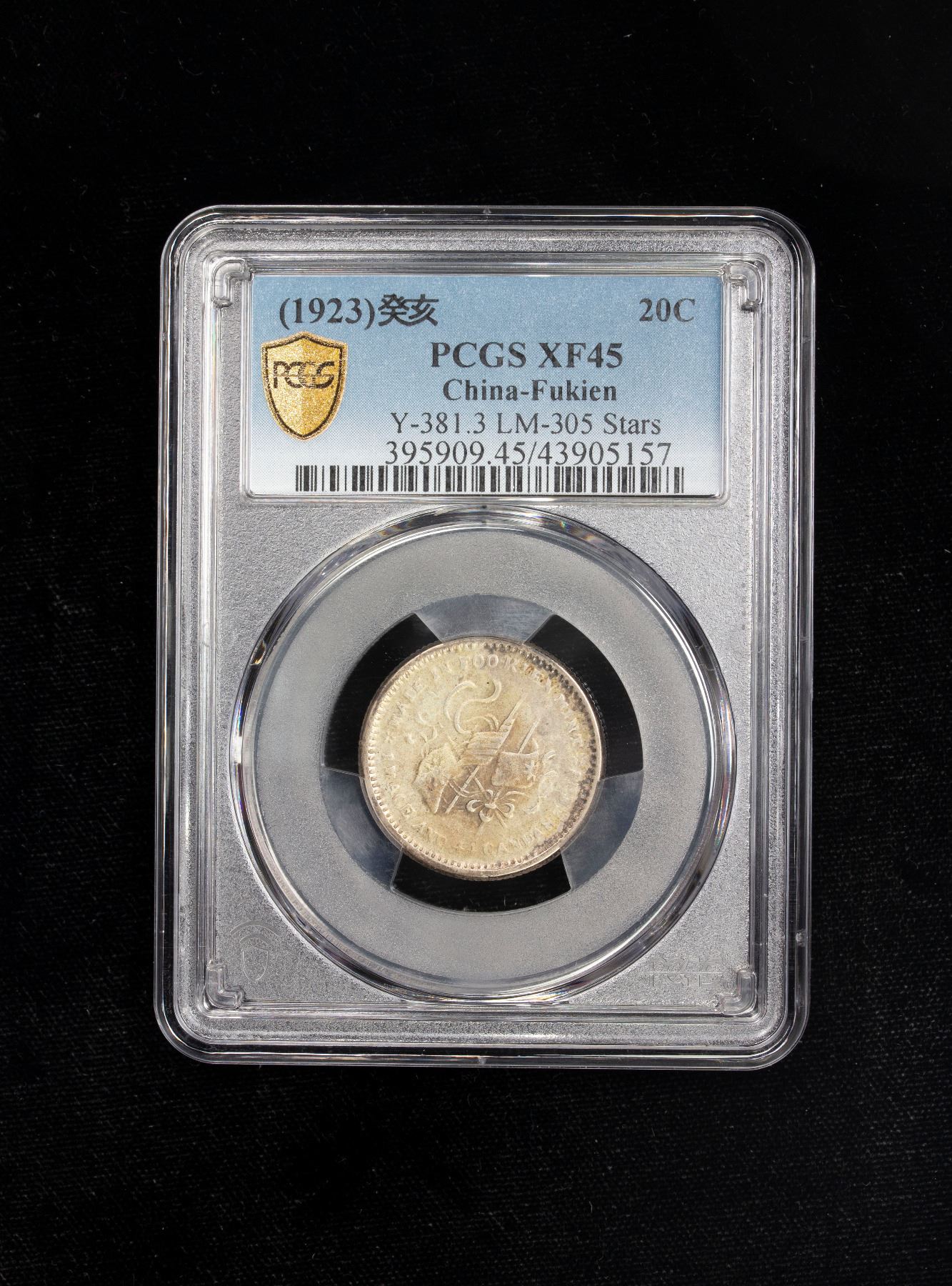 FUKIEN: Republic, AR 20 cents, ND (1912), Y-A381, L&M-301, flags of the Xinhai Revolution; Wuchang Uprising, Five-colored and Tongmenghui flags, XF45. Incorrect information on PCGS slab.