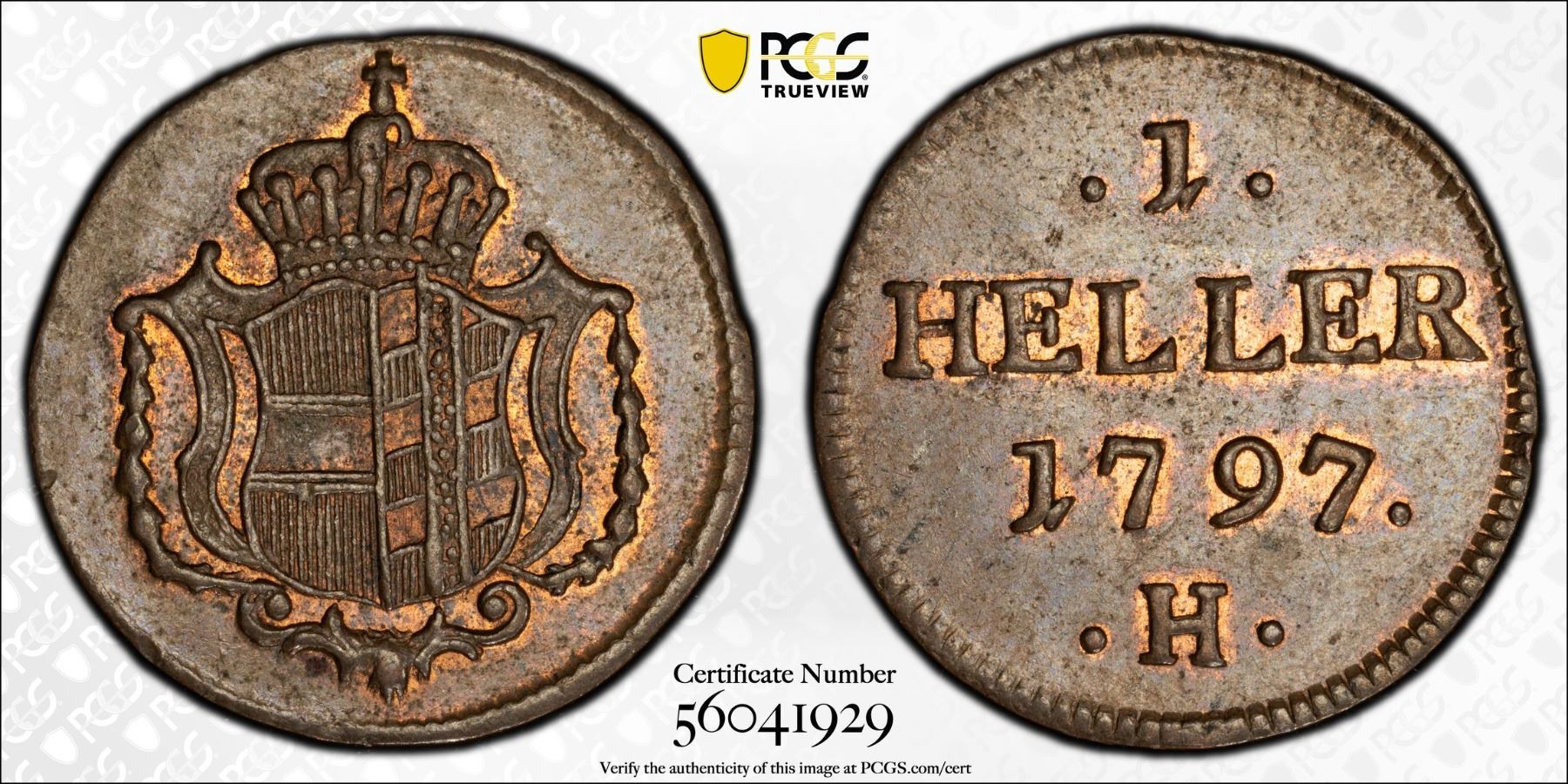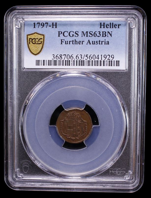 FURTHER AUSTRIA: Franz II, 1792-1805, AE heller, 1797, PCGS MS63 BN