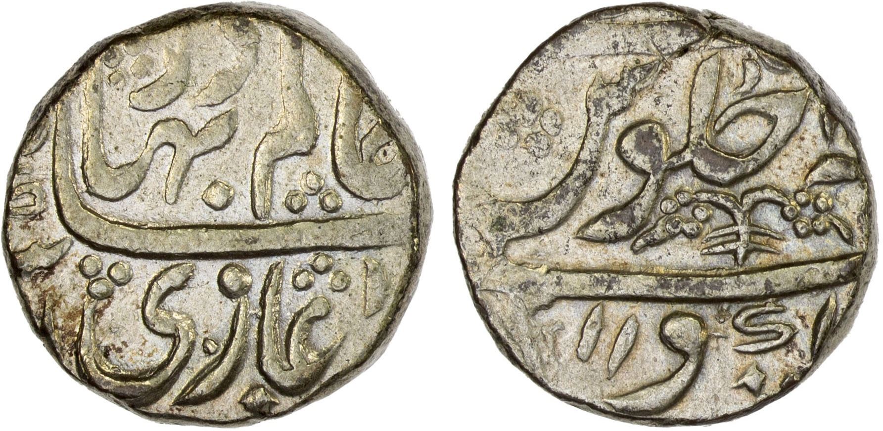GADWAL: AR rupee (8.83g), ND, Cr-20, in the name of Shah Alam Bahadur, VF.