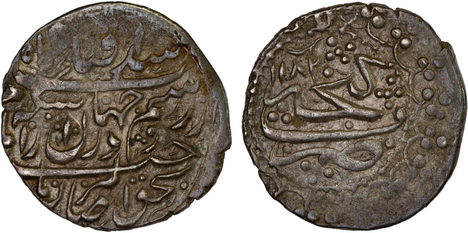GANJA: Muhammad Hasan Khan, 1760-1780, AR abbasi, Ganja, AH1182, A-A2944, KM-32, an attractive example, VF-XF.