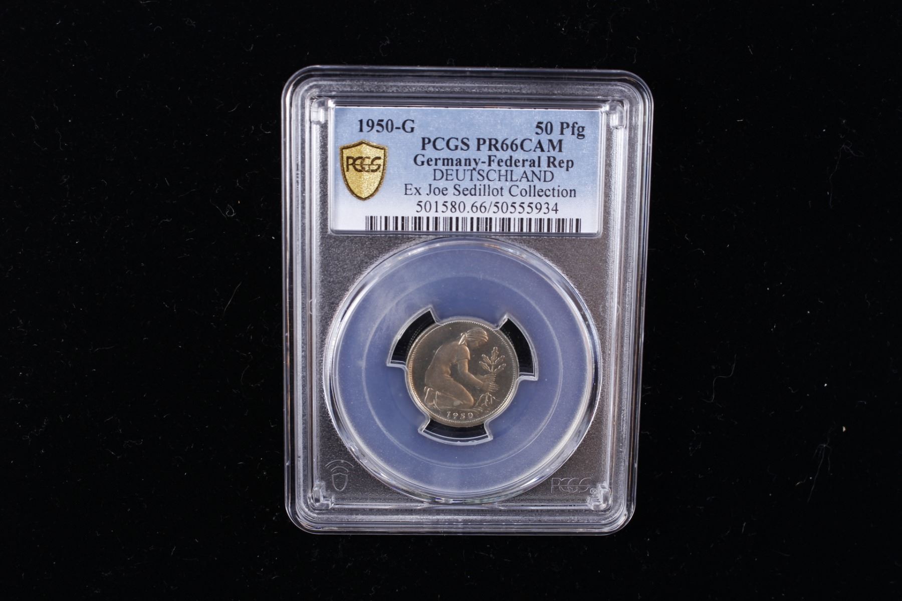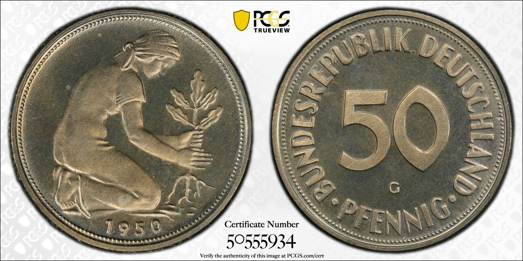 GERMANY: Federal Republic, 50 pfennig, 1950-G, KM-109.1, J-384, a fantastic proof quality example! PCGS graded Proof 66 CAM, ex Joe Sedillot Collection.
