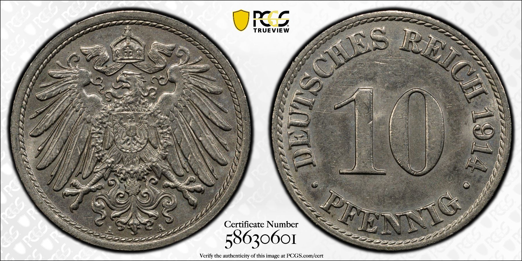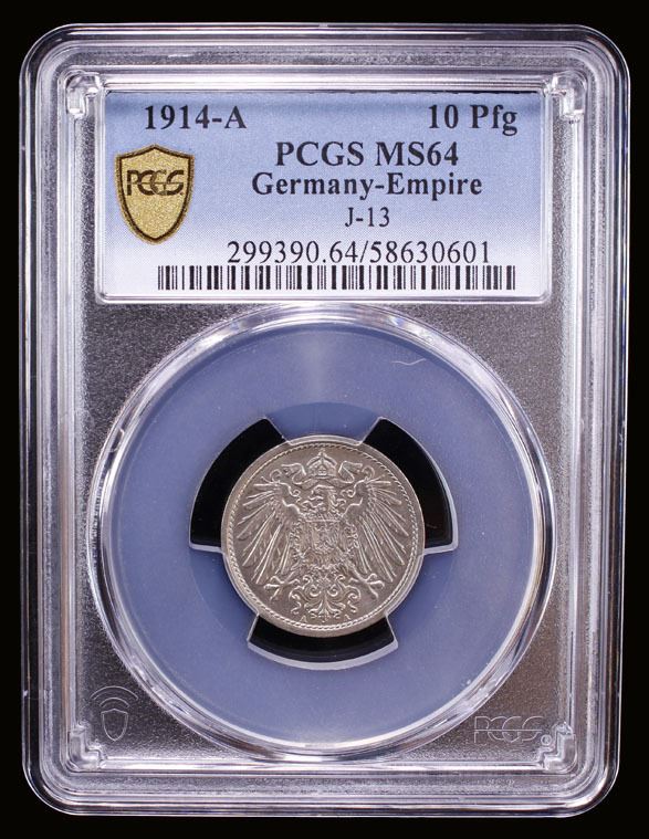 GERMANY: Kaiserreich, 10 pfennig, 1914-A, PCGS MS64
