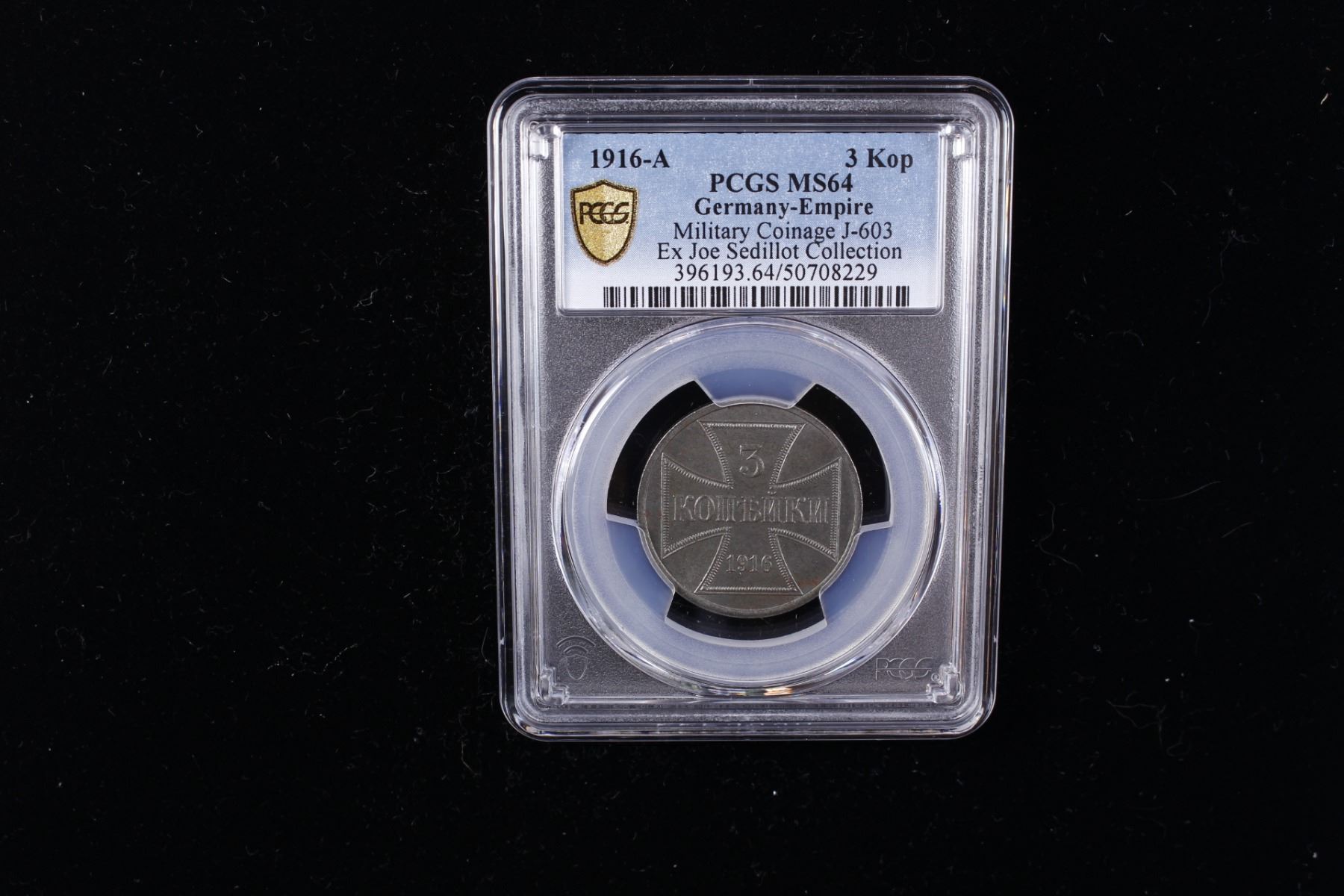 GERMANY: Kaiserreich, 3 kopecks, 1916-A, KM-23, J-603, Military Occupation issue, a wonderful toned mint state example! PCGS graded MS64, ex Joe Sedillot Collection. This iron type was issued during the First World War by the German military administration Oberbefehlshaber der Gesamten Deutschen Streitkräfte im Osten (Ober Ost), which comprised the former Russian governorates of Courland, Grodno, Vilna, Kovno and Suwalki, corresponding to parts of modern Latvia, Lithuania, Poland and Belarus.