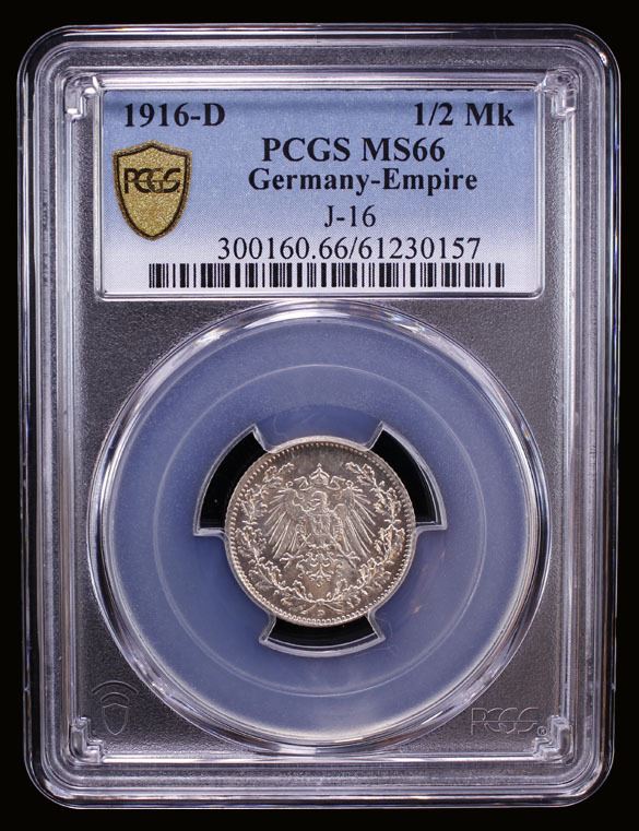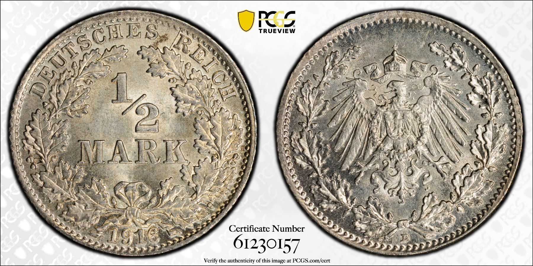 GERMANY: Kaiserreich, AE 1/2 mark, 1916-D, PCGS MS66