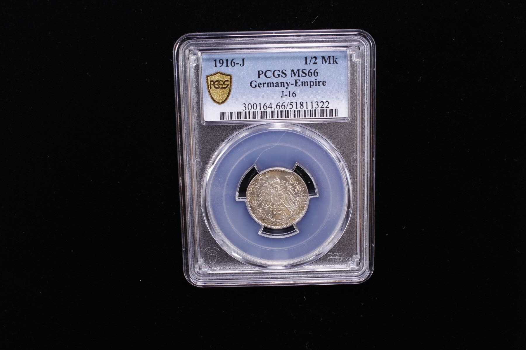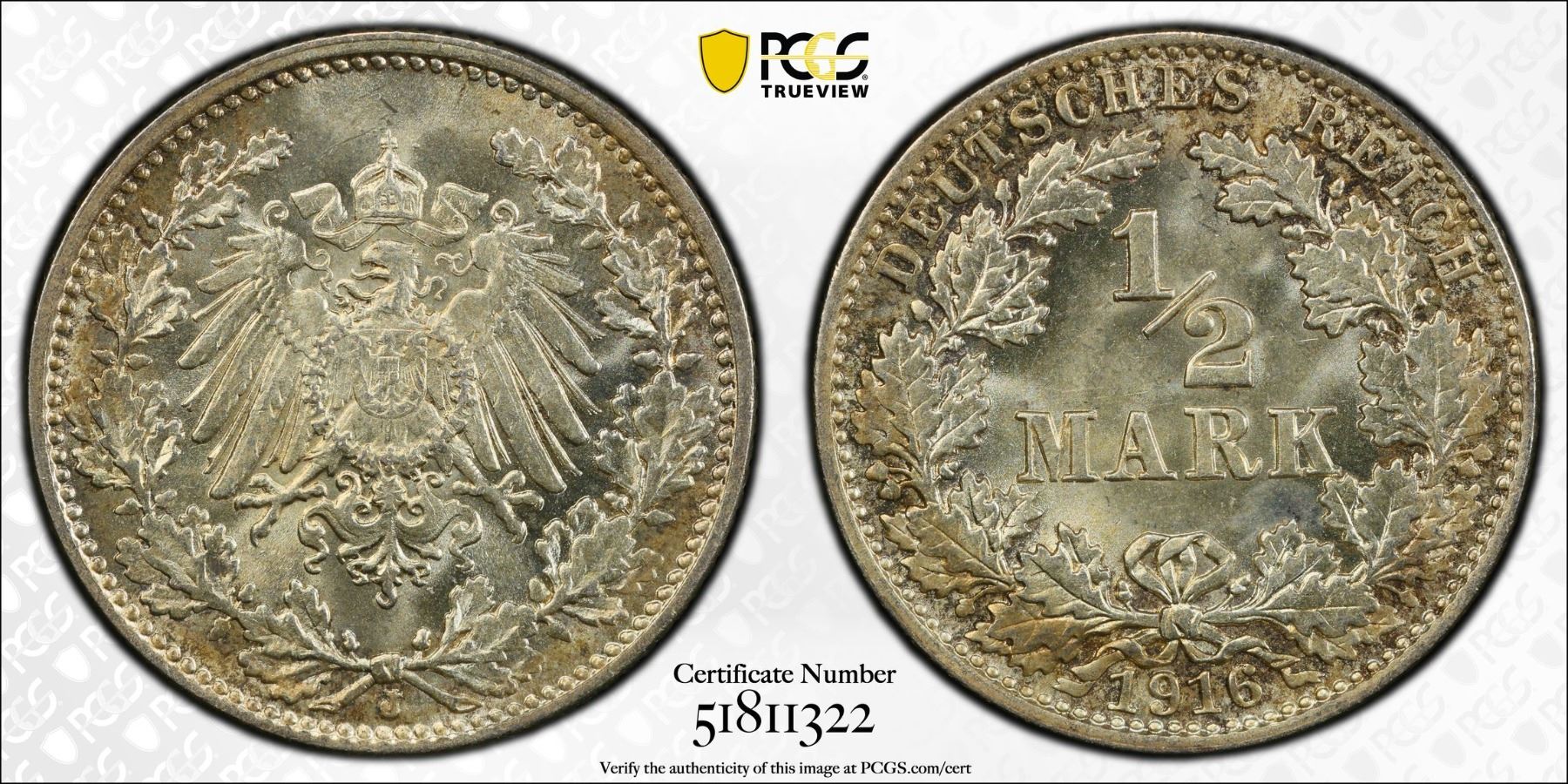 GERMANY: Kaiserreich, AR 1/2 mark, 1916-J, PCGS MS66