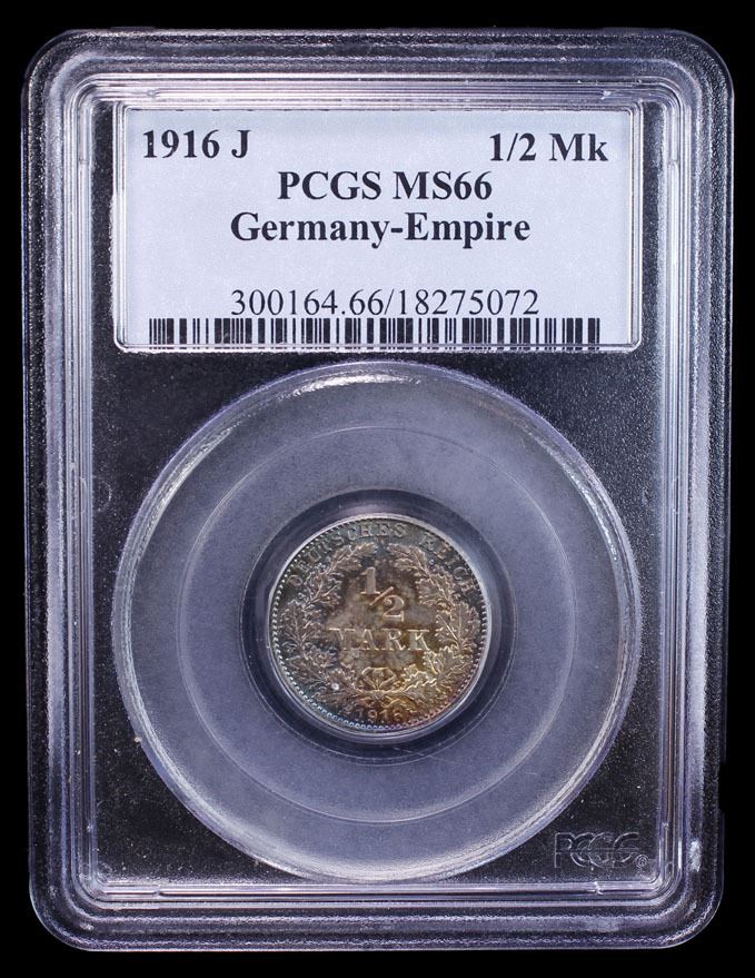 GERMANY: Kaiserreich, AR 1/2 mark, 1916-J, PCGS MS66
