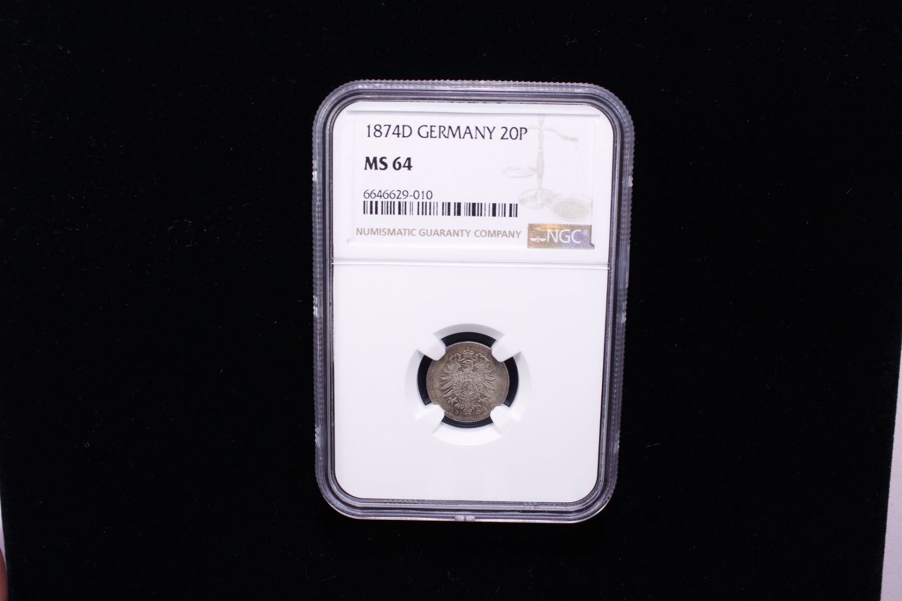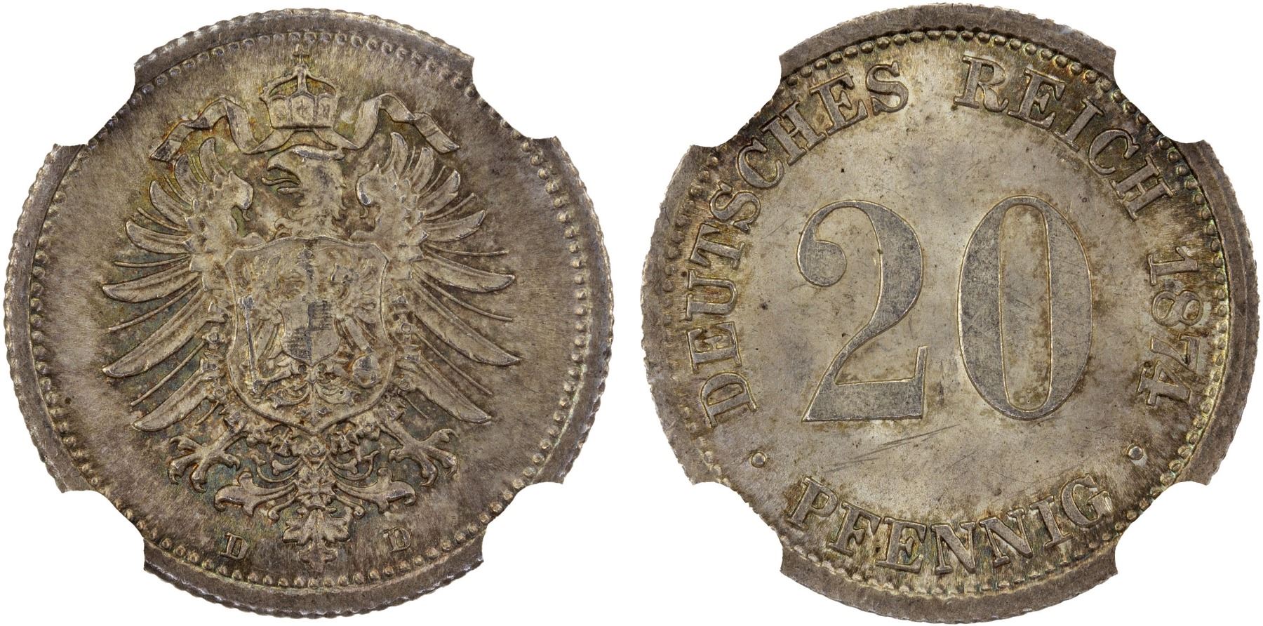 GERMANY: Kaiserreich, AR 20 pfennig, 1874-D, NGC MS64