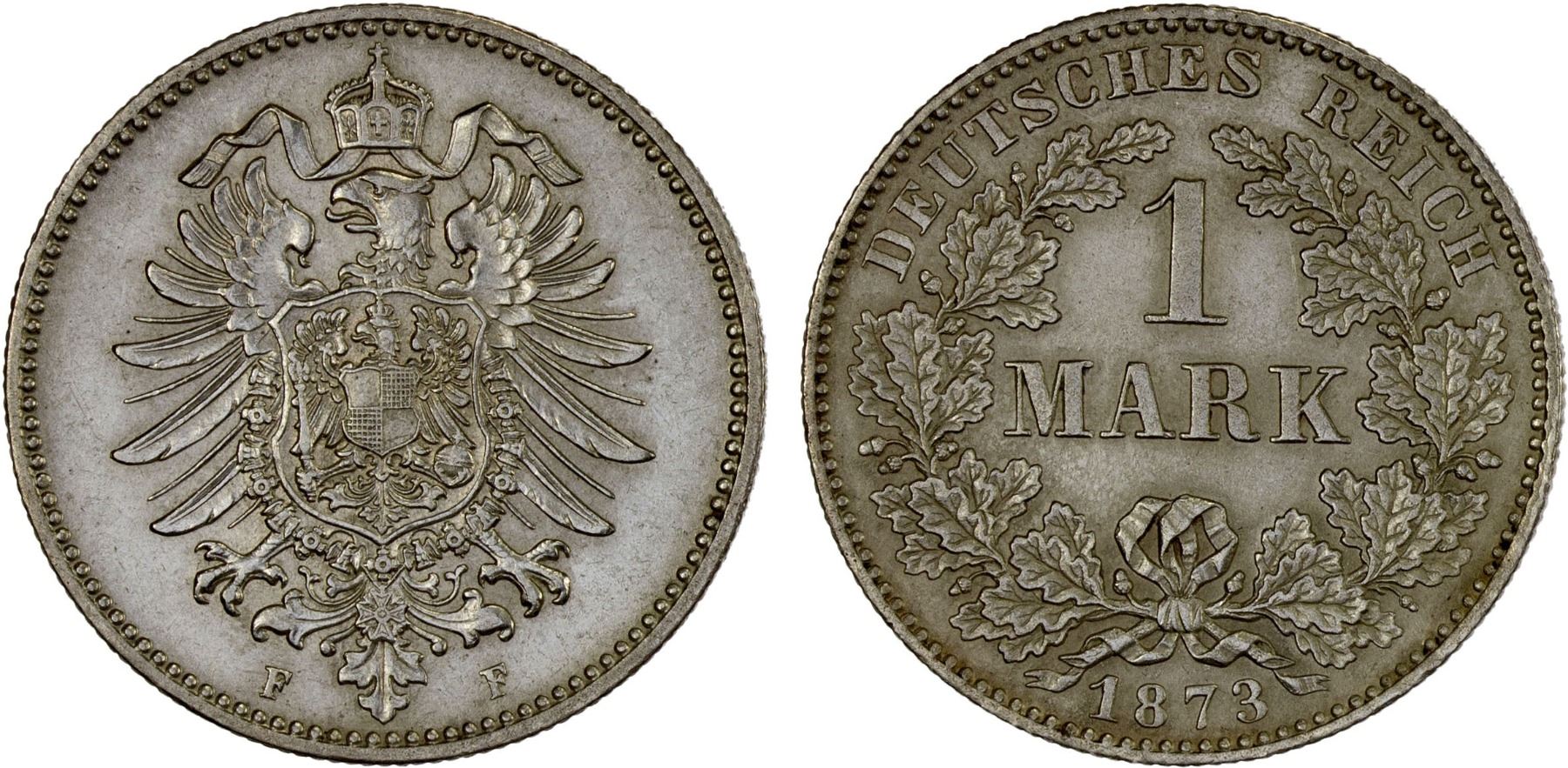 GERMANY: Kaiserreich, AR mark, 1873-F, KM-7, lightly cleaned, better date/mintmark, AU, ex Almer H. Orr III Collection.