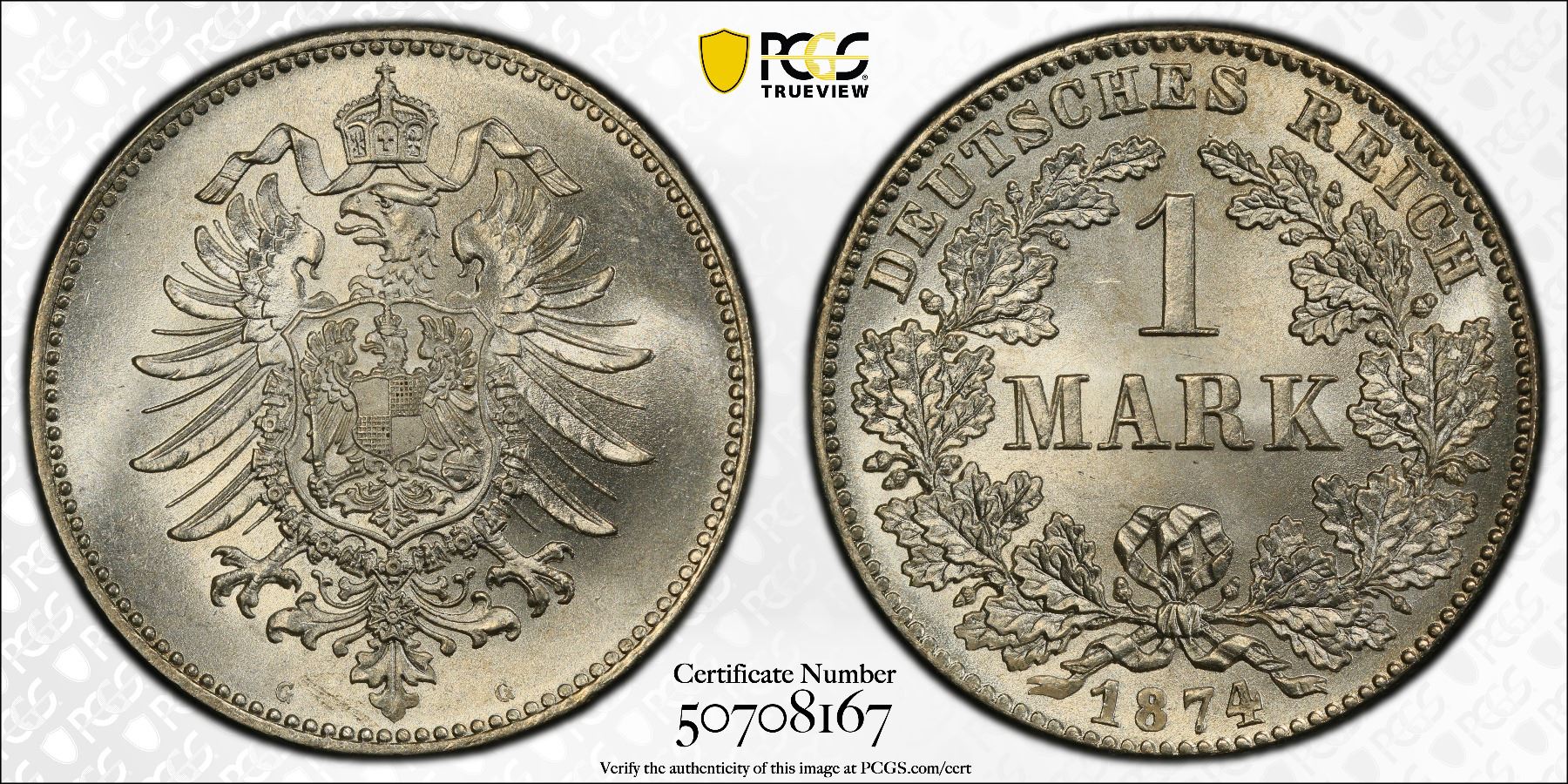 GERMANY: Kaiserreich, AR mark, 1874-G, KM-7, J-9, a superb lustrous example! PCGS graded MS65, ex Joe Sedillot Collection.