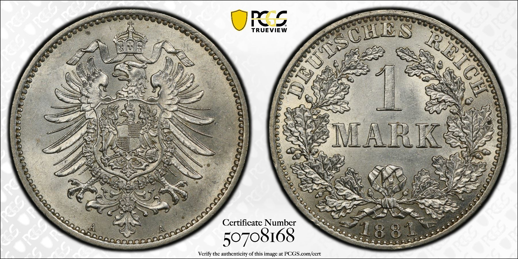 GERMANY: Kaiserreich, AR mark, 1881-A, KM-7, J-9, a lovely mint state example! PCGS graded MS63, ex Joe Sedillot Collection.