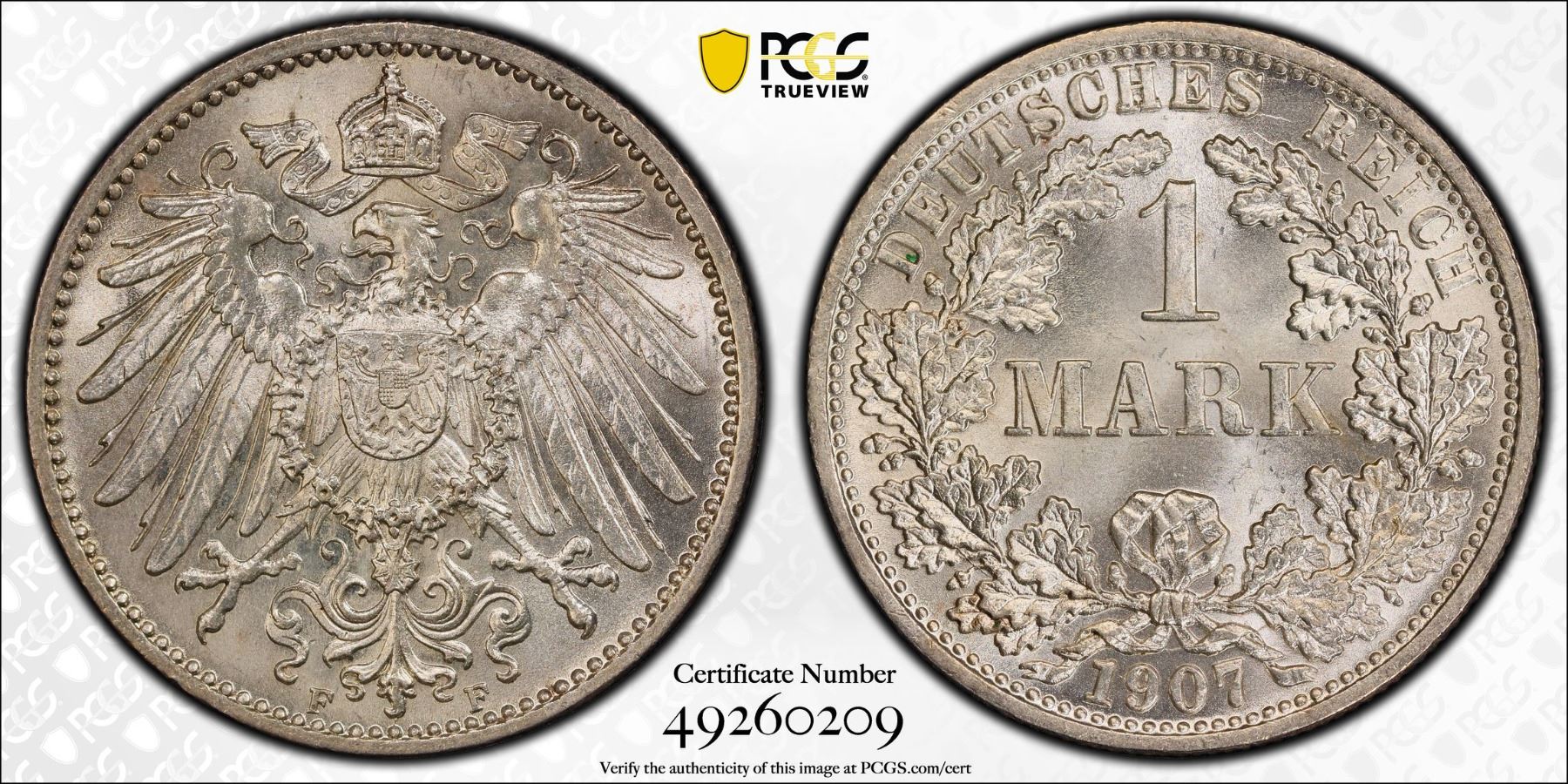 GERMANY: Kaiserreich, AR mark, 1907-F, KM-14, J-17, a fantastic quality example! PCGS graded MS66, ex Almer H. Orr III Collection.