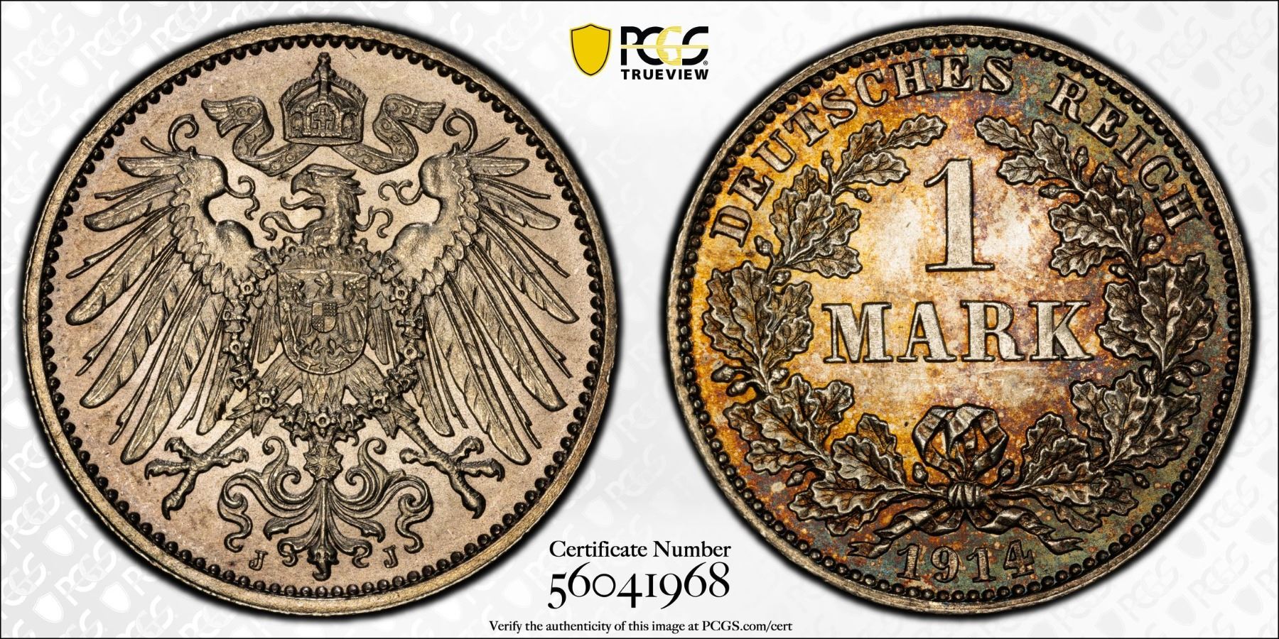 GERMANY: Kaiserreich, AR mark, Hamburg, 1914-J, PCGS MS66