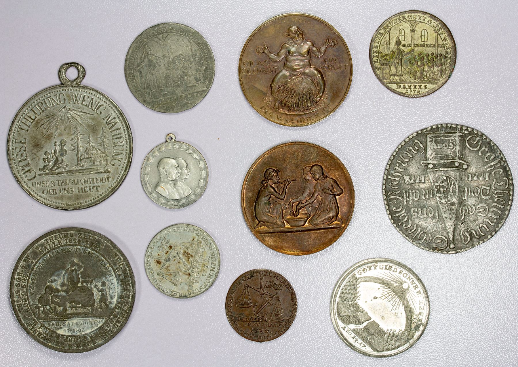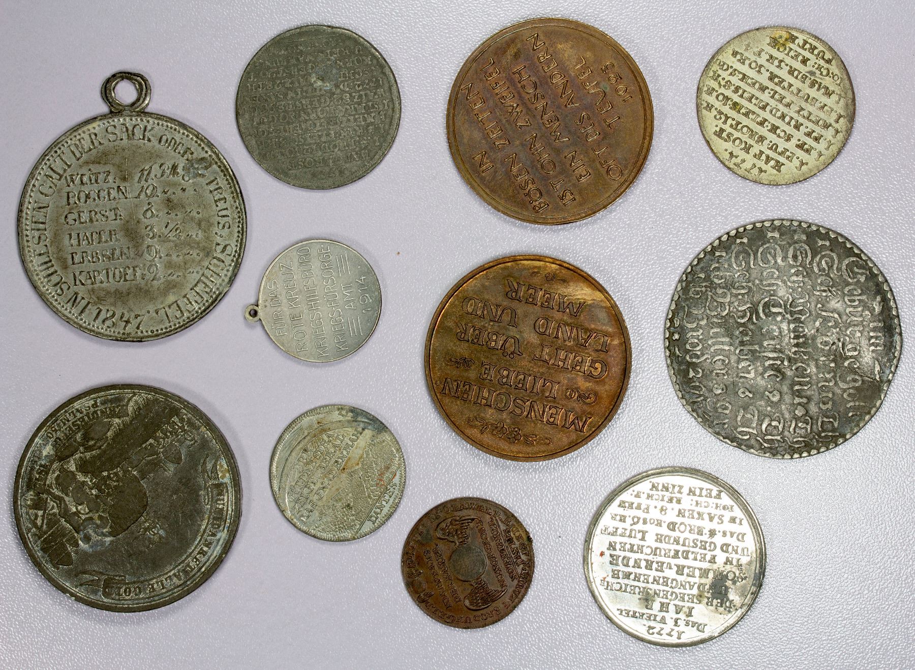 GERMANY: LOT of 11 medals, all related to famines and their relief, ranging from the 1700s to the 1920s; average circulated grades, including a few uncs, in consignor's 2x2 holders, viewing recommended; retail value $525, lot of 11 pieces, ex Arlie Slabaugh Collection.
