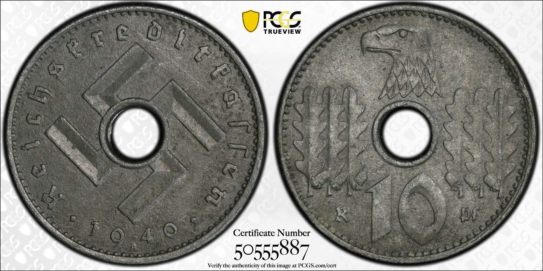 GERMANY: Third Reich, 10 reichspfennig, 1940-A, KM-99, Y-95, J-N619, Reichskreditkassen military issue, a pleasing mint state example, PCGS graded MS62, ex Joe Sedillot Collection.